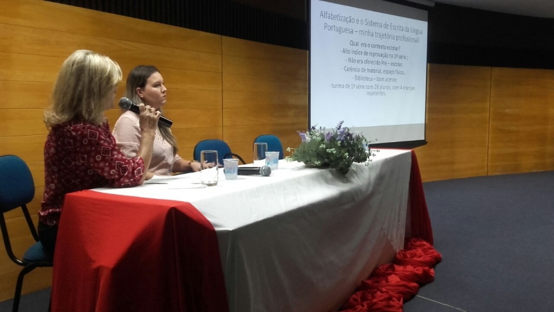 Evento organizado pelo curso de Pedagogia contou com a palestra de duas profissionais que atuam com alfabetização na rede pública do município