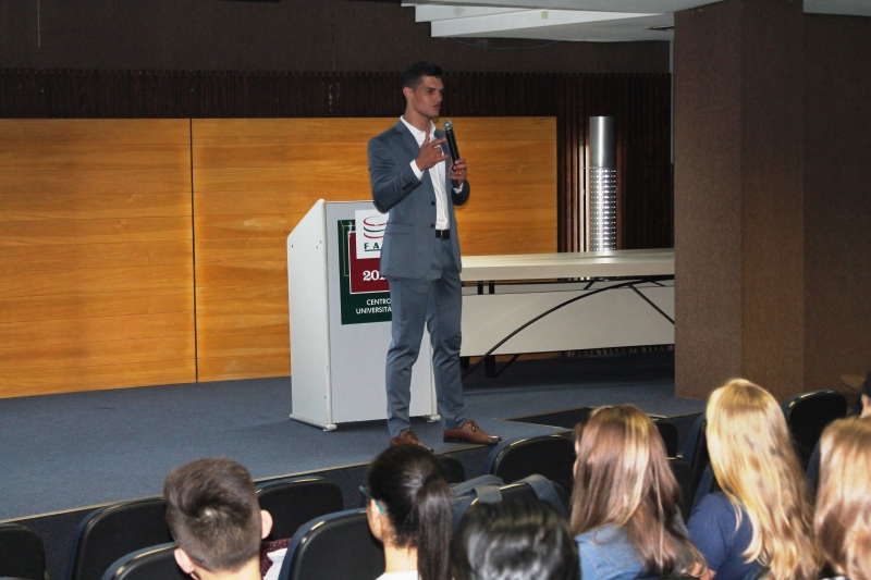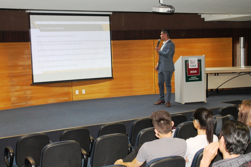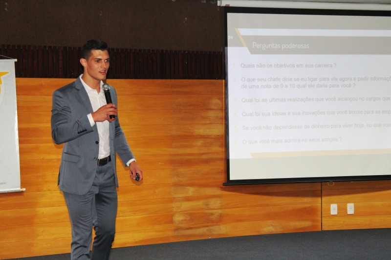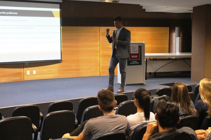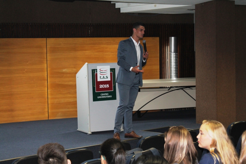Acadêmicos dos cursos de Gestão de Recursos Humanos e Administração da FAG Toledo participaram de uma palestra com a temática "Boas práticas de recrutamento e seleção", ministrada pelo coach Mario Uzueli. O palestrante apresentou aos presentes uma série de detalhes e dicas sobre a atuação do recrutador diante do recrutado. "Passamos um pouco pelo mundo dos recursos humanos e explanamos sobre os dois lados da mesa. O lado onde está o funcionário e qual a visão que ele tem neste processo de crescimento pessoal e da própria análise feita dele por parte da empresa. Também trabalhamos com o lado oposto, mostrando como é a sistemática de trabalho de um recrutador e de que forma ele pode aperfeiçoar suas táticas e ações", explica.