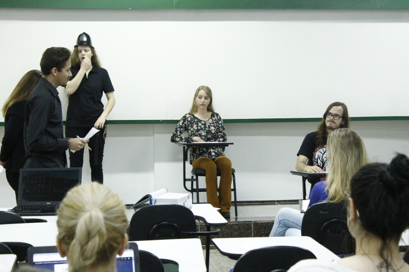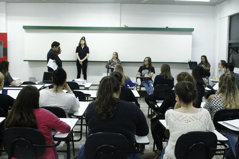 Acadêmicos do 6º período do curso de Psicologia do Centro FAG, participaram de um Júri Simulado, em que, o caso em questão era sobre "Treinamento Presencial e EAD". A atividade foi acompanhada pela professora Lais Raycik, na disciplina Psicologia Organizacional. "O objetivo foi discutir um tema que está em alta para que eles pudessem conhecer as diferentes metodologias que podem ser aplicadas. É importante para que eles conheçam todas as ferramentas, inclusive a em EAD", explica.
