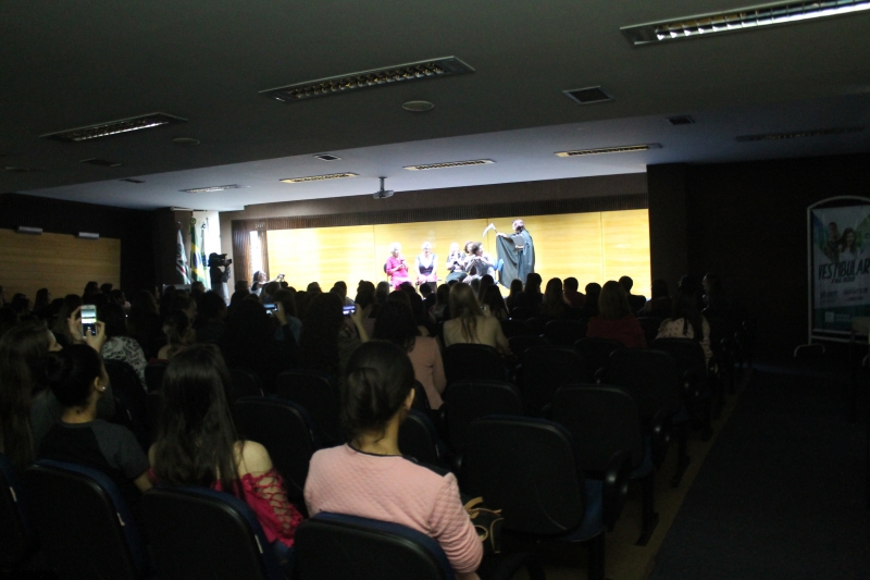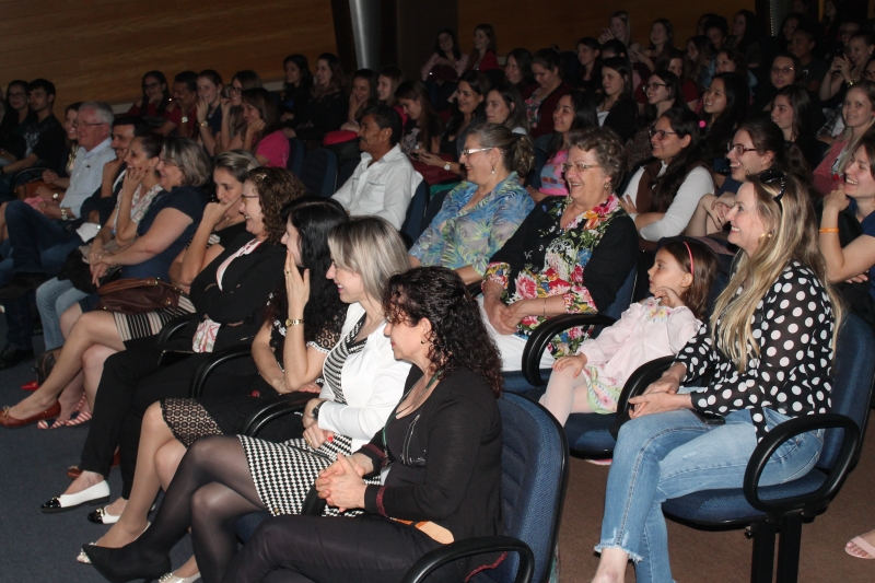 O curso de Pedagogia da FAG Toledo realizou uma atividade especial para comemorar o Dia dos Professores na noite desta segunda-feira (15). Estudantes e docentes lotaram o auditório da instituição para assistir ao espetáculo "Conexão Perdida", do grupo de teatro Viva a Idade da Unimed. "Nós temos muito que comemorar nesta data, pois toda a formação que qualquer pessoa tenha, seja ela de um curso técnico, superior ou ensino fundamental tem o trabalho de um professor por trás. Então, nada melhor do que nos reunirmos para assistir o trabalho destas senhoras e refletir um pouco sobre a vida, de forma descontraída e bem humorada", comenta a coordenadora do curso, Doralice Pizzo Diniz.
