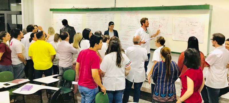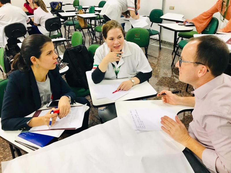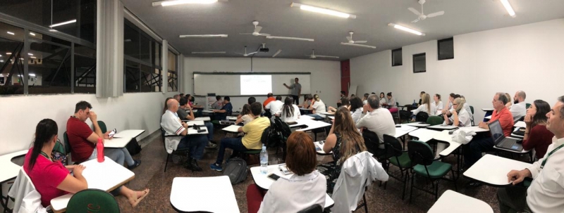As oficinas foram ministradas pelo Pró-reitor Acadêmico, Afonso Cavalheiro Neto, e pela Coordenadora do NAAE (Núcleo de Atendimento e Apoio ao Estudante), Patrícia Radaelli. A intenção foi oferecer formação continuada de professores para demonstração, discussão e aplicação de algumas metodologias que apresentam boa performance com turmas numerosas, alinhadas com os conceitos de Sala de Aula Invertida, Instrução por Pares e Aprendizagem Baseada em Equipes. "Pude trazer aos professores um pouco da experiência adquirida na formação em que participei na Tampere University of Applied Sciences, na Finlândia. Estamos buscando atualização no melhor modelo de educação do mundo", expressa Afonso.
