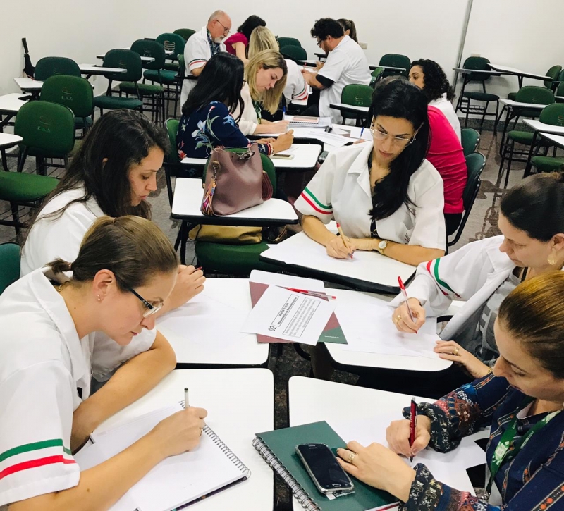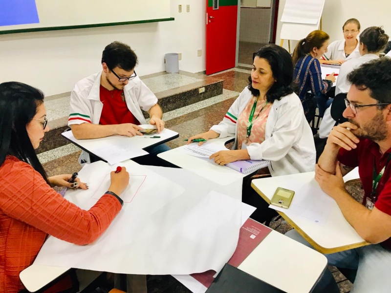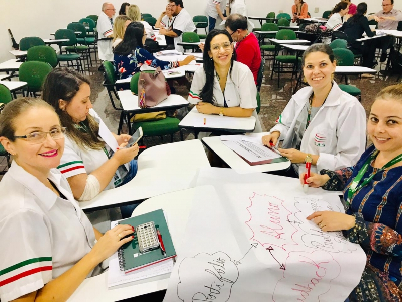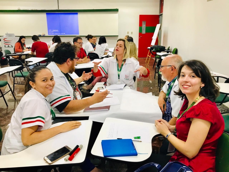 Os professores do Centro Universitário FAG e da Faculdade Dom Bosco tiveram uma programação especial nesta semana. Com a ausência de aulas, os professores tomaram o lugar dos alunos e participaram de oficinas temáticas sobre Metodologias Ativas.