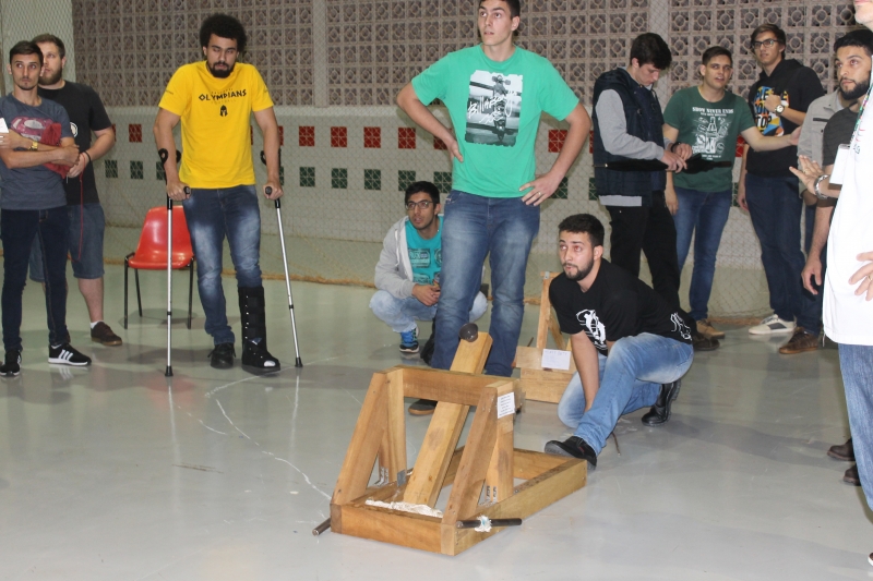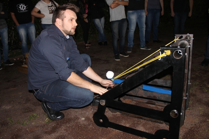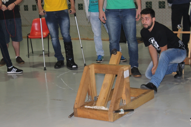 Os trabalhos foram desenvolvidos com o auxílio do professor, Eliseu Zanella Júnior. Na apresentação das catapultas, o teste foi arremessar uma bolinha no alvo. "Nesse exercício, eles aprender sobre Estática, Dinâmica, Cálculo Estrutural, Resistência dos Materiais e organização em equipe. Uma boa catapulta deve ser feita com materiais leves, resistentes e que tenham um ângulo e uma performance de mola que permitam atingir uma distância adequada", explica o professor.