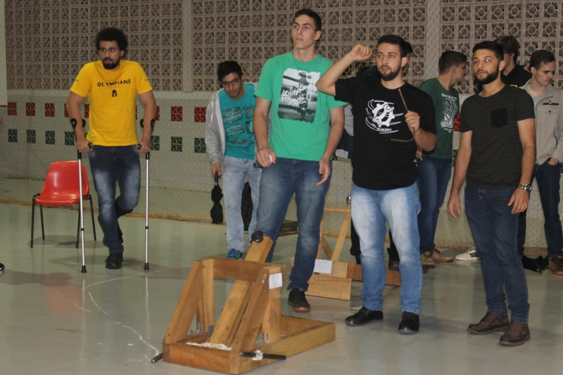 Os alunos de Engenharia Mecânica de todos os períodos do Centro Universitário FAG foram desafiados a criar catapultas. No início do ano, eles apresentaram um relatório com o desenho e a defesa de suas criações próprias do instrumento bélico. Neste semestre, foi a vez de executar o que foi projetado e testar os protótipos.