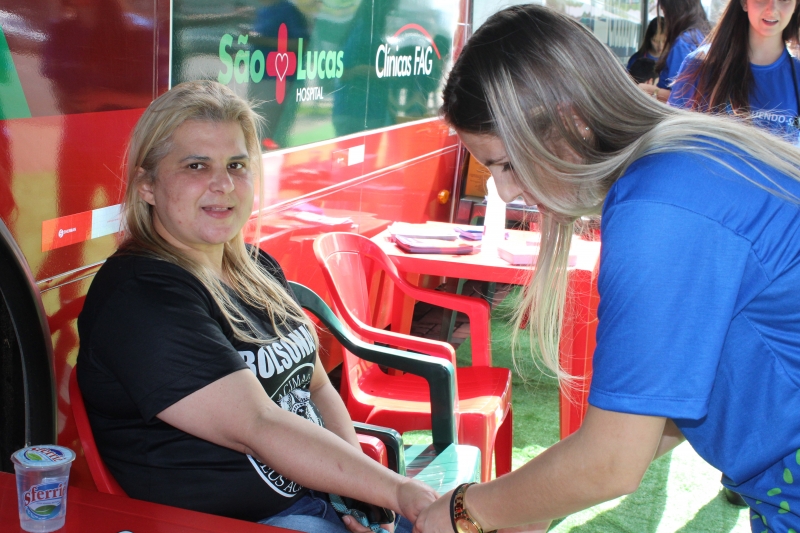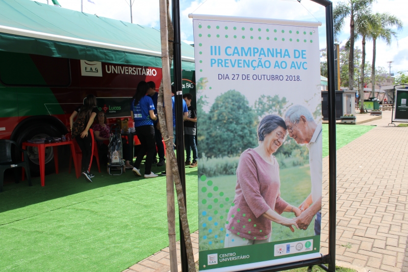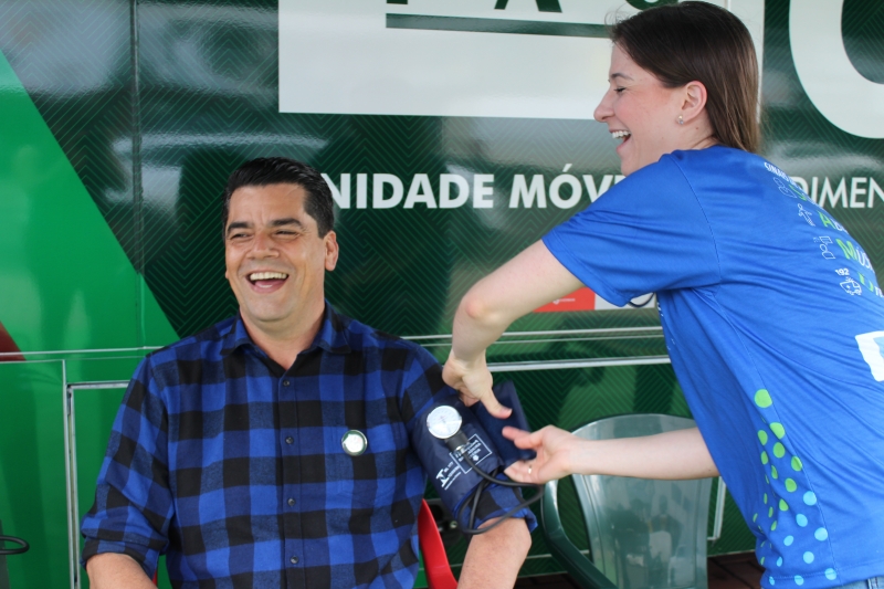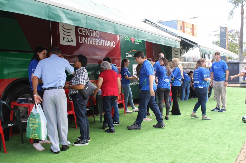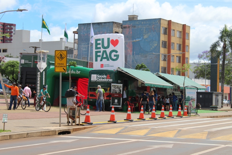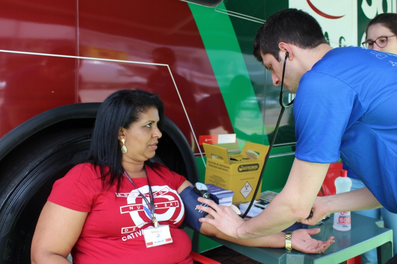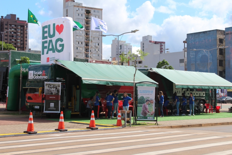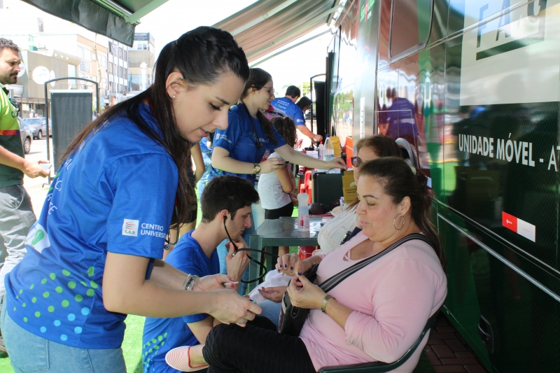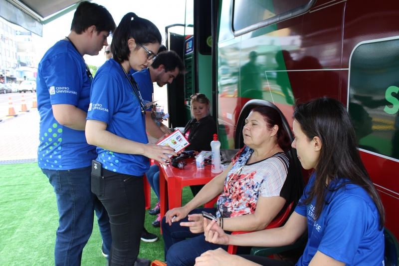 Na tarde do último sábado (27), foi possível cuidar da saúde no centro de Cascavel. O Ônibus Saúde e Cidadania estacionou no Calçadão da Avenida Brasil e foi a estrutura utilizada pelos acadêmicos de Medicina na 3ª Campanha de Prevenção ao AVC. A ação antecipou o Dia Mundial de Combate ao Acidente Vascular Cerebral (AVC), lembrado em 29 de outubro, que tem a finalidade de conscientizar as pessoas sobre as formas de prevenção da doença cerebral que mais mata no Brasil.