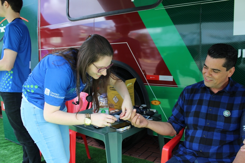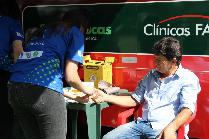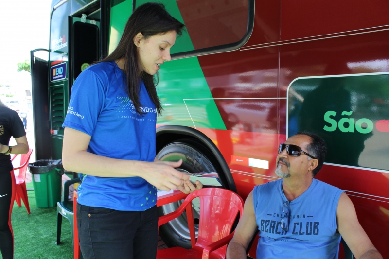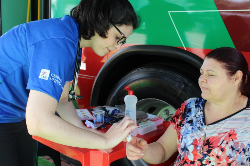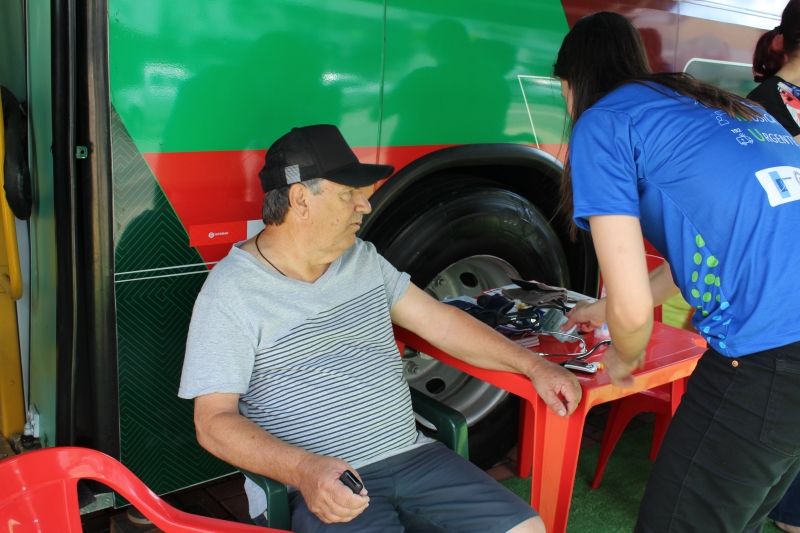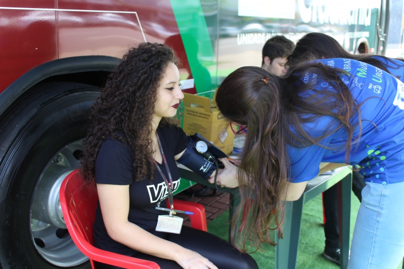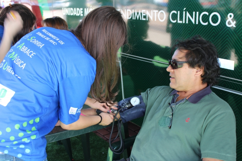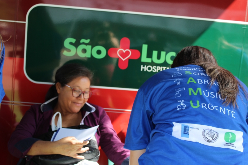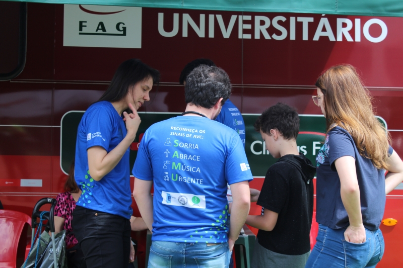 Quem passou pelos ônibus pode ter a pressão aferida e também passou por teste de glicemia. Para conscientizar a população, os alunos distribuíram folders, com a explicação dos fatores de risco e sobre como identificar um Acidente Vascular Cerebral. Entender o acrônimo "SAMU" faz toda a diferença. "O S é da palavra sorrir: peça para pessoa dar um sorriso e observe a simetria da boca; na sequência, a letra A significa abraçar: peça para que a pessoa te abrace para que você sinta a força dos dois braços igualmente; depois, vamos para letra M que significa música: Solicite que a pessoa cante uma música e atente para a voz "embolada" ou arrastada. Se você identificar um ou mais desses sinais, vá para letra U e ligue para 192 para solicitar um atendimento médico de urgência", explica o acadêmico, Gabriel Zenatti.