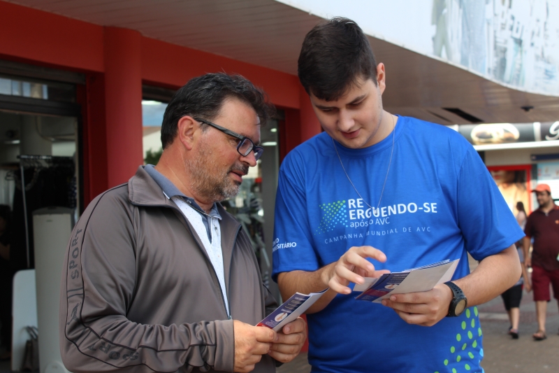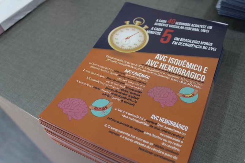 Para conscientizar a população, os alunos distribuíram folders, com a explicação dos fatores de risco e sobre como identificar um Acidente Vascular Cerebral