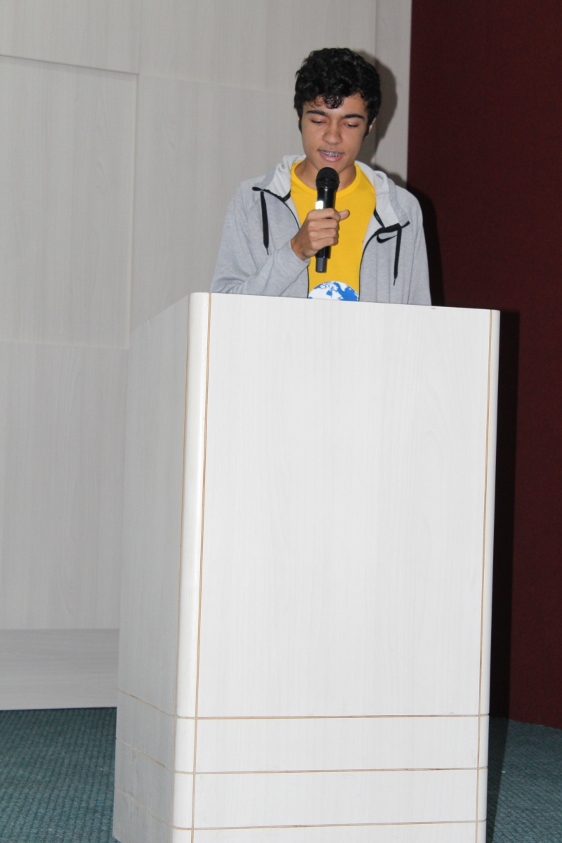 Lucas da Silva Mello ganhou em 1° lugar no concurso de Oratória, ele abordou sobre questões ambientais, sociais, política e também questões moralistas. Disse que procurou trabalhar seu texto com vários temas, mas sempre com um olhar crítico. "Eu desenvolvi meu texto baseado nos problemas que vejo diariamente na sociedade, de forma mais ampla e visando sempre a crítica. Sempre tive o incentivo da família. Amei a experiência, ainda mais por ter apresentado para pessoas que trabalham com jovens e adolescentes", comenta.