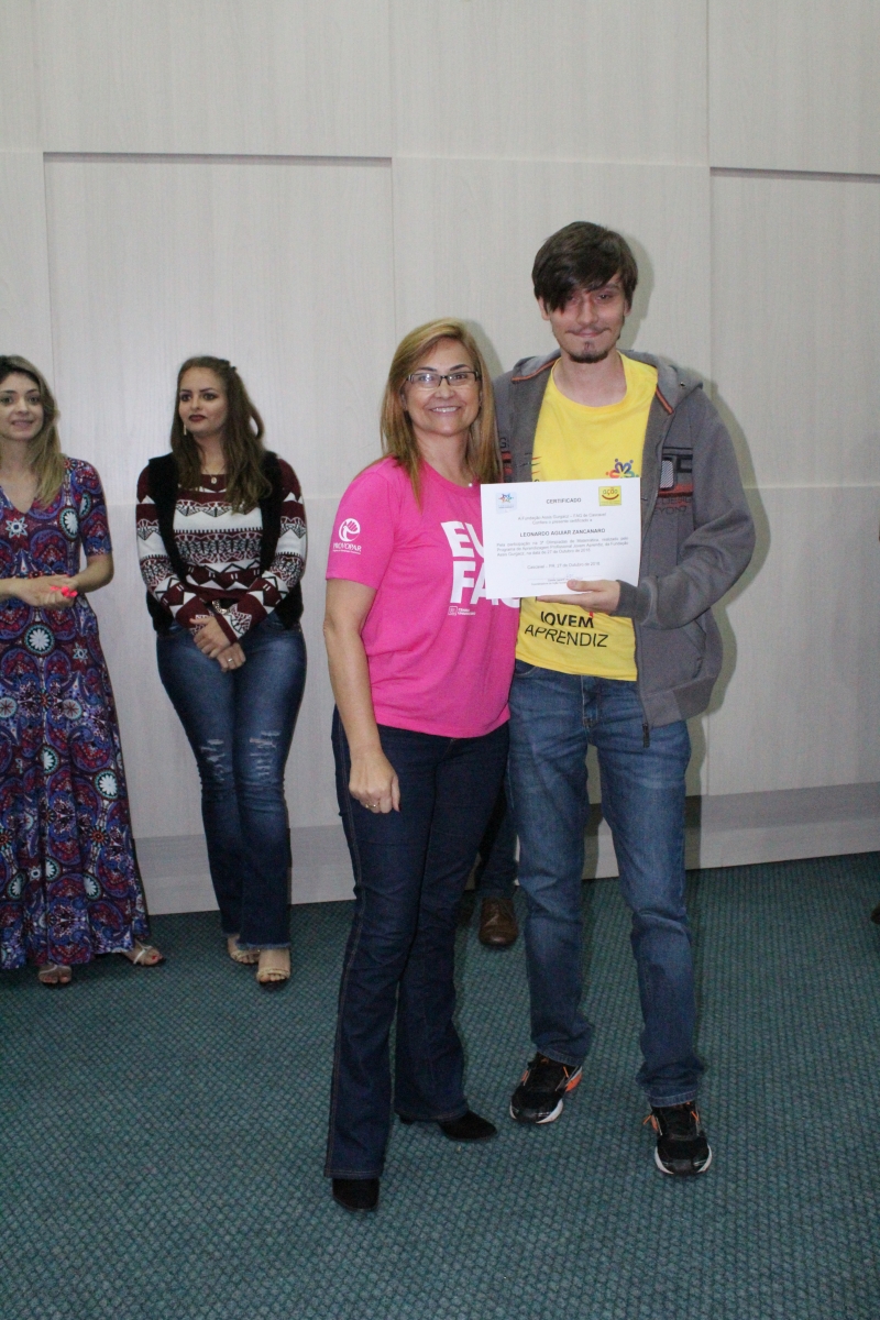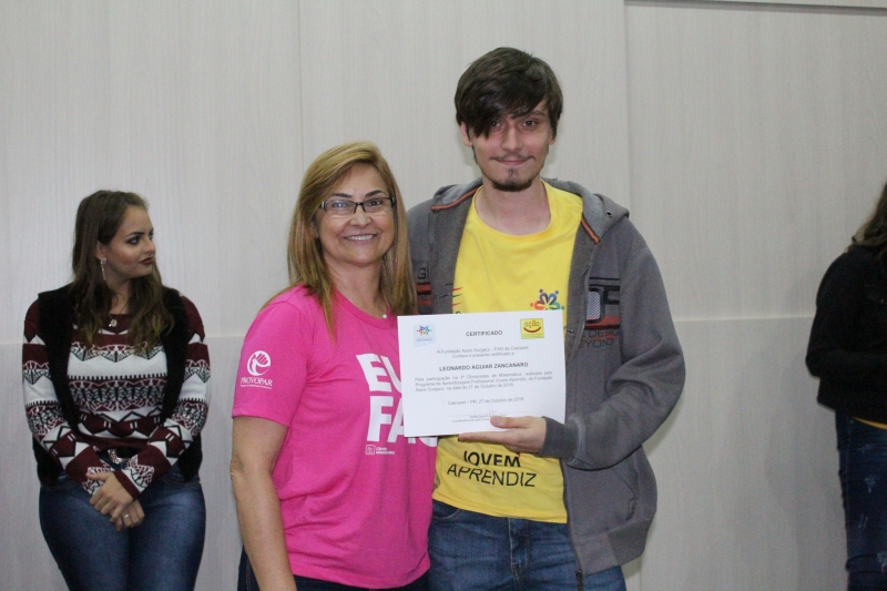 Na oportunidade, também foram premiados os melhores colocados na 3ª Olimpíada de Matemática. A disputa tem a finalidade de preparar e motivar os jovens aprendizes para que se ganhem destaque no mercado de trabalho e na vida escolar, estimulando ainda o raciocínio lógico e a criatividade através da resolução de operações matemáticas. Além disso, o projeto tem o intuito de demonstrar a importância da matemática e dos números na vida das pessoas e no seu dia a dia, tendo como base os conteúdos de matemática básica, as quatro operações, matemática financeira, a utilização da calculadora científica, a leitura interpretativa de gráficos e a utilização do Excel como ferramenta básica de trabalho.