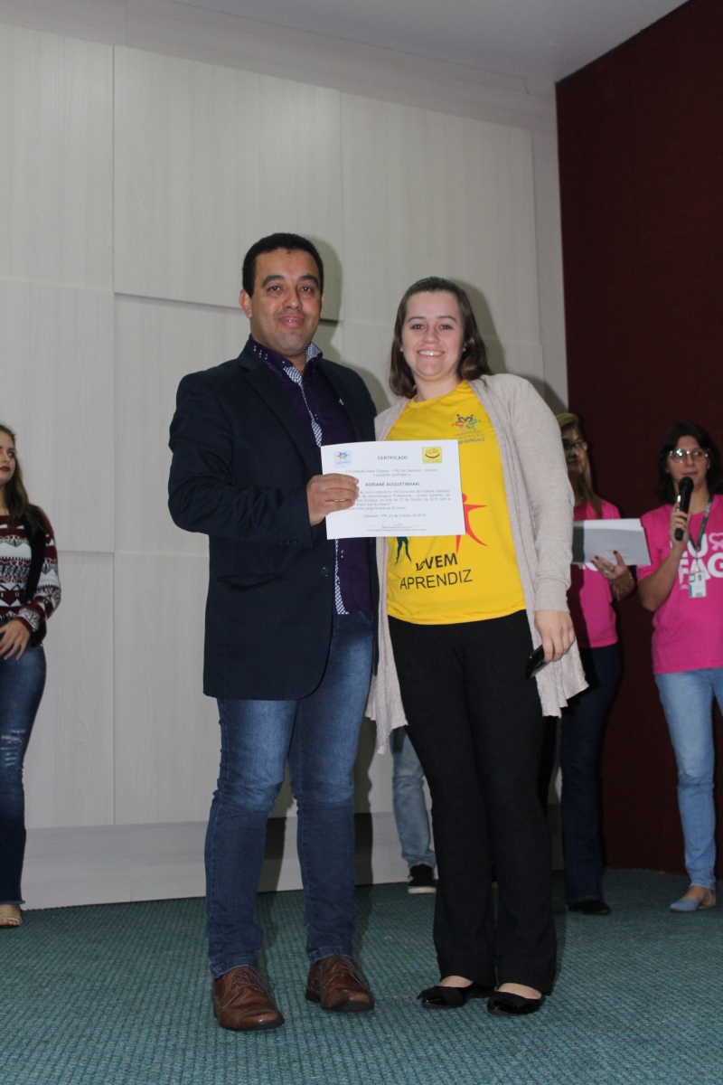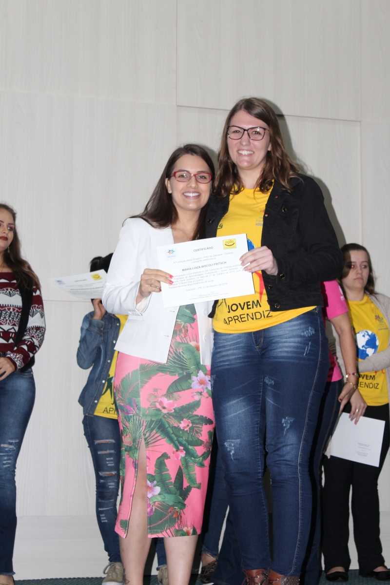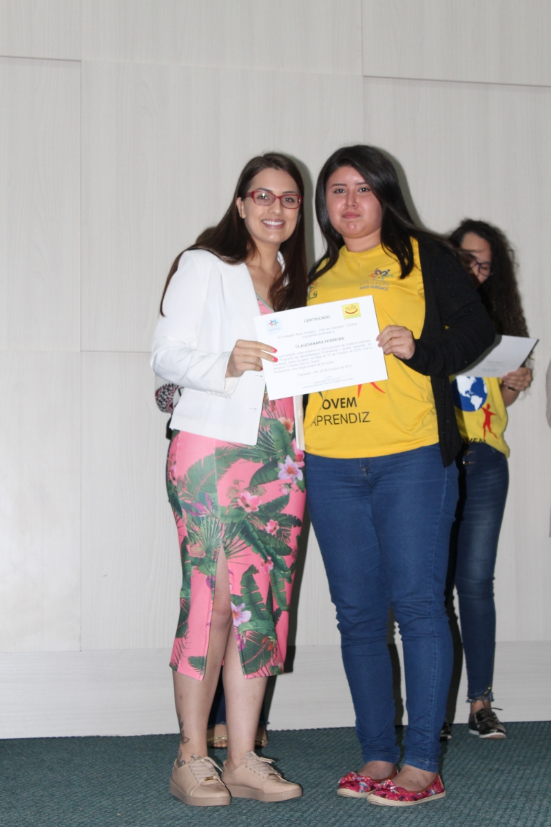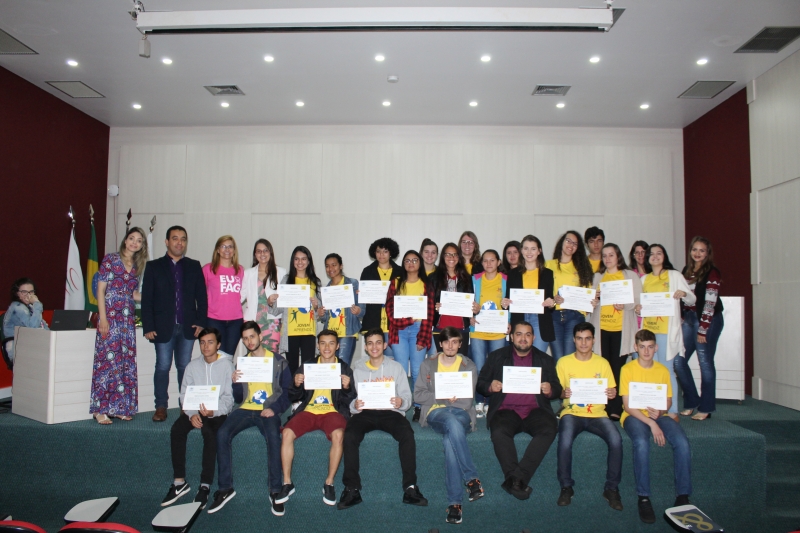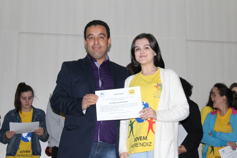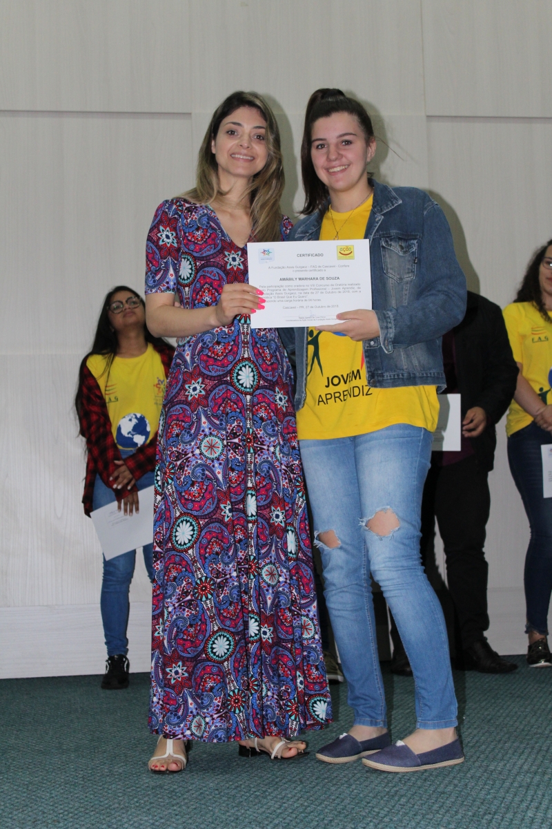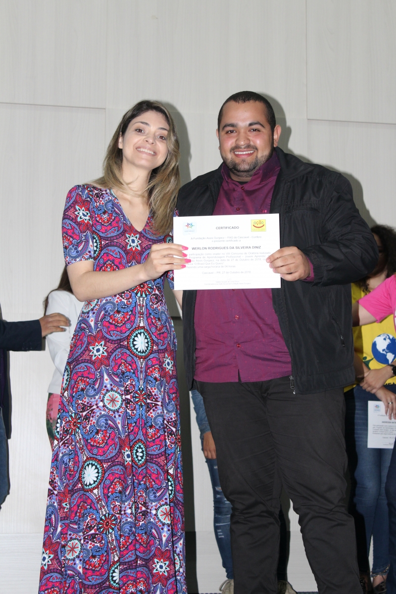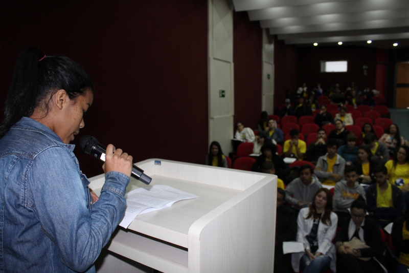 Quem nunca sentiu aquele friozinho na barriga ao ter que falar em público? Isso gera medo em muitas pessoas. Para desenvolver essa habilidade, o PAJA (Programa de Aprendizagem Jovem Aprendiz) da Fundação Assis Gurgacz realizou a 8ª edição do Concurso de Oratória. A disputa teve como tema: "O Brasil que eu quero" e contou com quatro jurados: Marília Montiel Coutinho, Presidente do Conselho Municipal do Direito da Criança e do Adolescente; Vanderlei Augusto da Silva, Diretor da Secretaria de Educação; Laura de Oliveira, acadêmica do curso de Psicologia do Centro FAG; e Bruna Rafaela acadêmica do curso de Educação Física do Centro FAG.