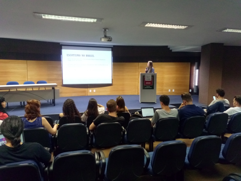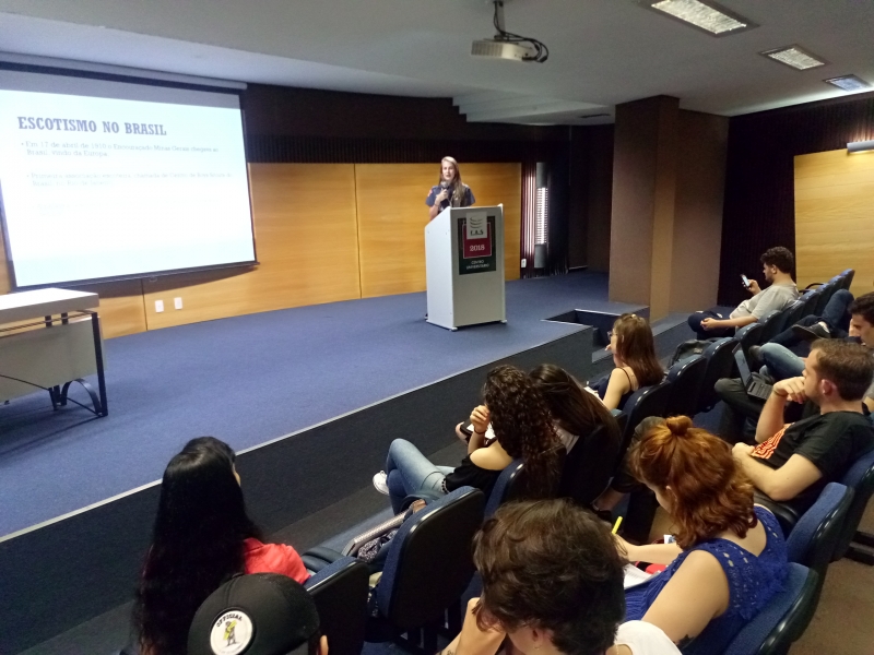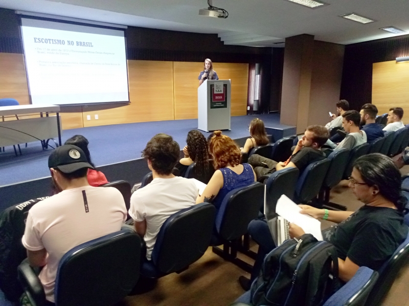 Os acadêmicos do 2º período do curso de Publicidade de Propaganda da FAG Toledo ocuparam o palco do auditório na última semana. Com microfone nas mãos eles cumpriram o desafio proposto pela Cleonilda Tonin Farcas, que organizou o Seminário Sobre o Poder da Palavra: Oratória e Retórica. O evento foi a etapa final do projeto de Metodologias Ativas, que começou com os alunos escolhendo assuntos, fazendo leituras, fichamento e montando a explanação a ser apresentada em público. "Não é de hoje que as teorias da aprendizagem nos trazem a necessidade de interação social e o aluno protagonista como principais elementos da construção significativa do conhecimento. Então a atividade é um desafio para fomentar construção de novos saberes, partindo das informações que já fazem parte do repertório deles, com a necessidade de vivenciar situações, resolver problemas, planejar e executar projetos como protagonistas", explica a docente. Segundo ela, os objetivos foram alcançados. "Eles se empenharam bastante, apresentaram com algum nervosismo porque é mesmo algo desafiador que eles não estão acostumados, mas estar diante de uma plateia, fazer uso do microfone é uma forma de deixar fruir a habilidade que é imprescindível para o comunicador contemporâneo que é o poder da argumentação", relata.