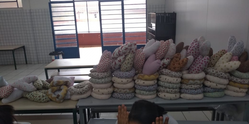Com a participação direta de 120 pessoas entre professores, alunos e voluntários, as almofadas ficaram prontas em 40 dias. 270 peças serão doadas para a Fundação Waldir Becker que atua dando suporte a pacientes e familiares de pacientes em tratamento de câncer na cidade e Região. 180 peças ficarão no próprio colégio à disposição da comunidade que necessitar do artefato.