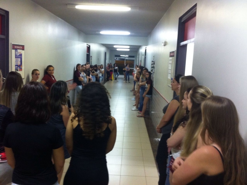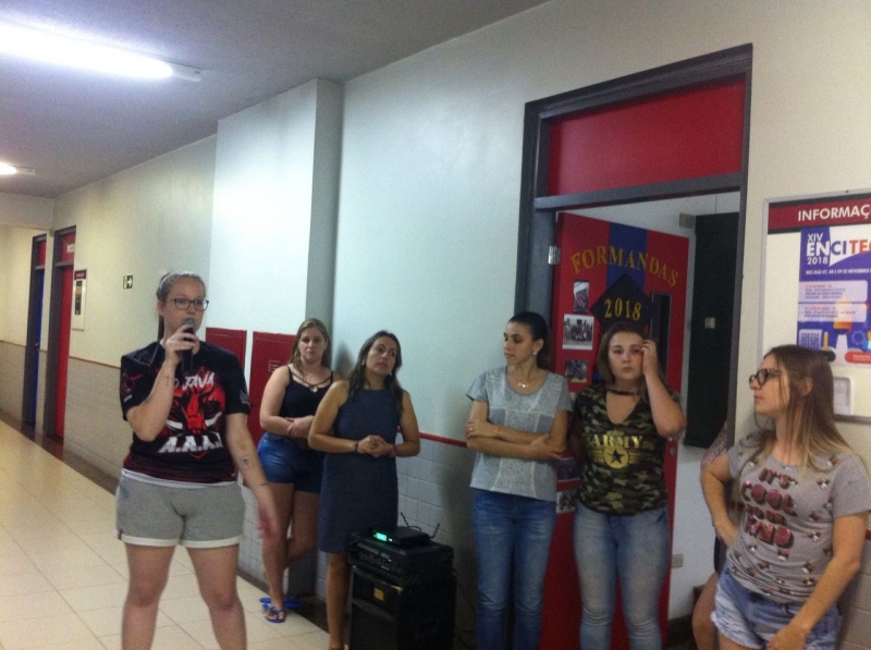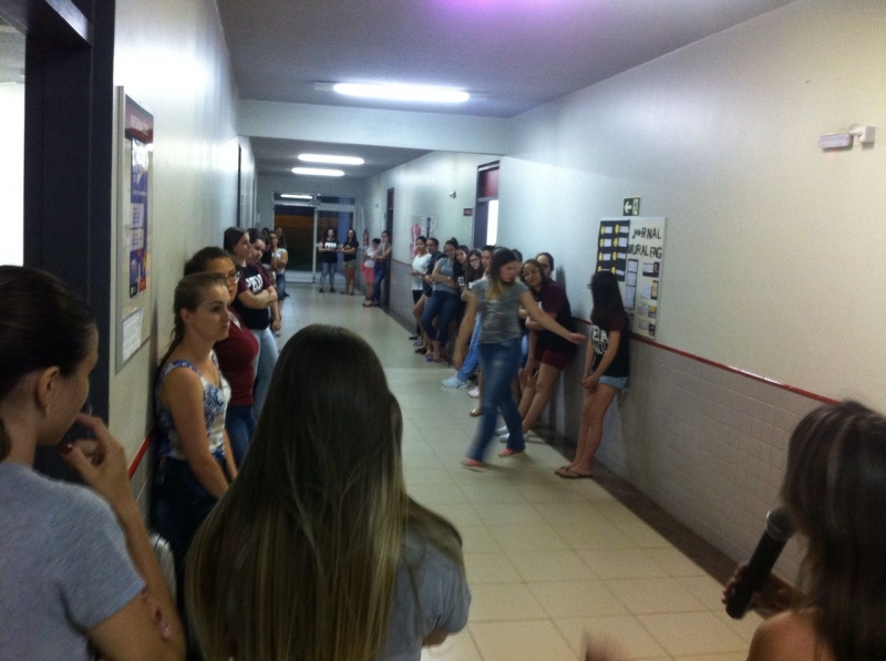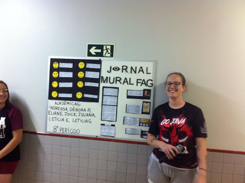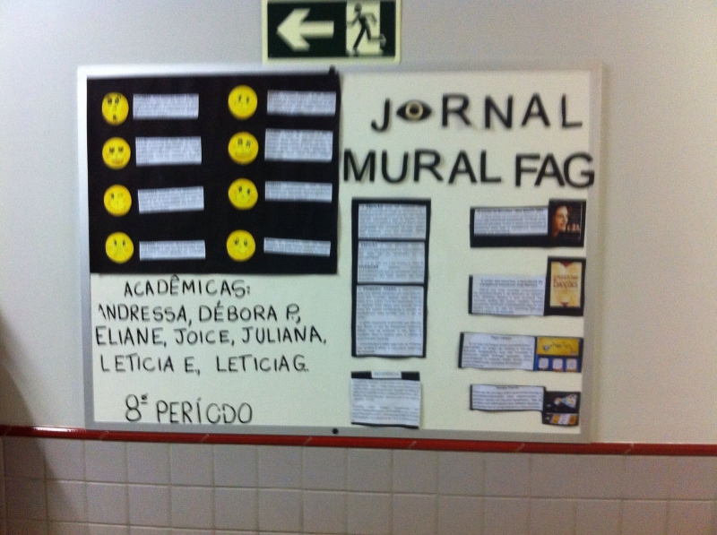 Os acadêmicos do 8º período do curso de Pedagogia da FAG Toledo foram desafiados pela professora Dulce Alves Nakamura a desenvolver um projeto de educomunicação chamado "Compartilhado Sentimentos" na disciplina de Tecnologias na Educação. Um Dos grupos desenvolveu um jornal mural, que foi instalado do corredor do Bloco III e apresentado na noite desta terça-feira aos demais acadêmicos do curso. Outro grupo criou uma caixa de emoções e a outra equipe aceitou o desafio de criar um telejornal. "Foi muito desafiador porque foge do que a gente somos acostumados a fazer todos os dias. Abre a nossa mente para termos ideias diferentes para se trabalhar com as crianças. Trabalhar a questão da afetividade também foi importante porque na educação também é necessário se ter carinho para entender a criança como um todo. O educador precisa ter este olhar", afirma a acadêmica Aline Simionato.
