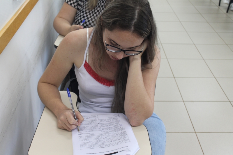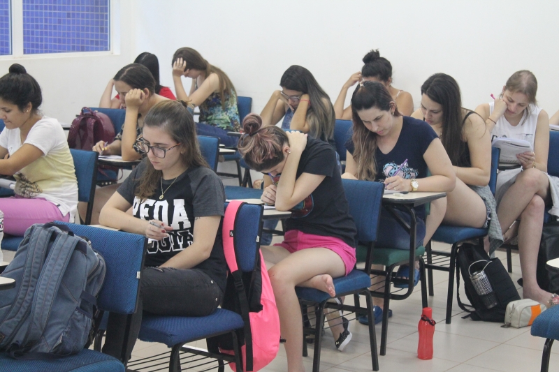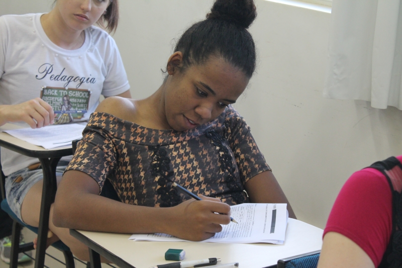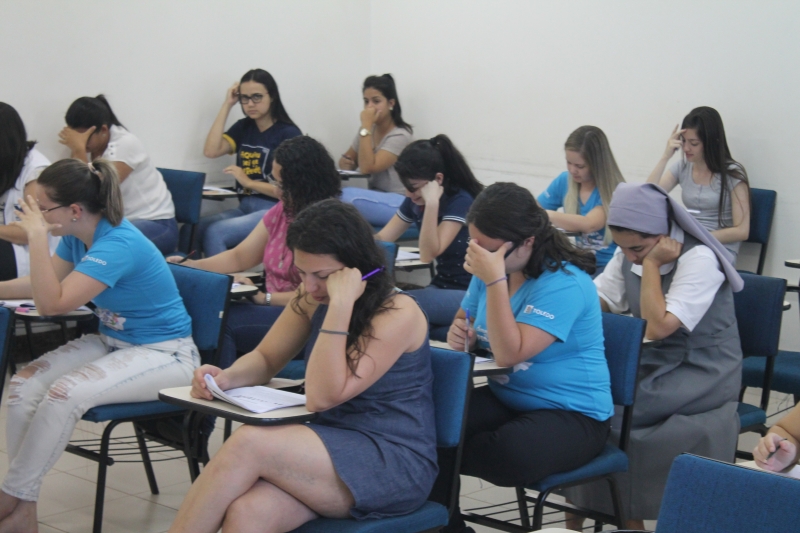 Os acadêmicos do 6º e 4º períodos do curso de Pedagogia da FAG Toledo realizaram nesta segunda-feira (5) um teste de conhecimentos gerais. O teste é aplicado semestralmente aos acadêmicos que vão realizar o Exame Nacional de Desempenho de Estudantes (Enade). A prova, de acordo com a coordenadora do curso, Doralice Pizzo Diniz, consiste em questões específicas da área de Pedagogia e também de conhecimentos gerais. "Neste teste eles terão várias questões relacionadas à nossa área e também as de conhecimentos gerais que são muito importantes, pois proporcionam a eles uma visão mais ampla sobre questões gerais da nossa sociedade. Muitos acadêmicos não costumam ler revistas e jornais, focam as leituras apenas nos conteúdo da graduação e na hora de fazer um exame como o Enade eles acabam não tendo o aproveitamento ideal, pois vários temas abordados no exame são de conhecimentos gerais", explica. Para a docente, os testes aplicados são norteadores para as disciplinas e atividades do curso. "É uma forma de acompanharmos os nossos alunos, como tem sido a evolução deles nos primeiros anos e nos anos finais do curso através dos resultados apresentados nestes questionários", comenta.