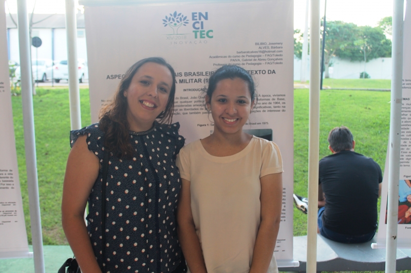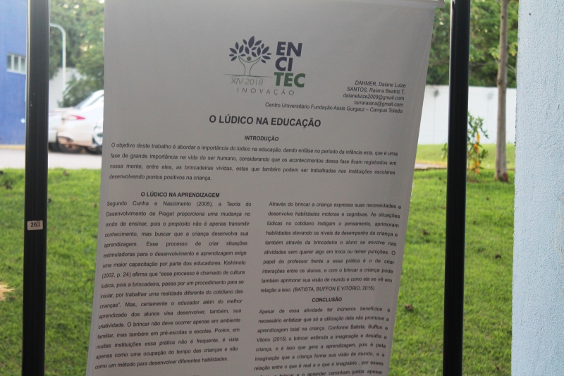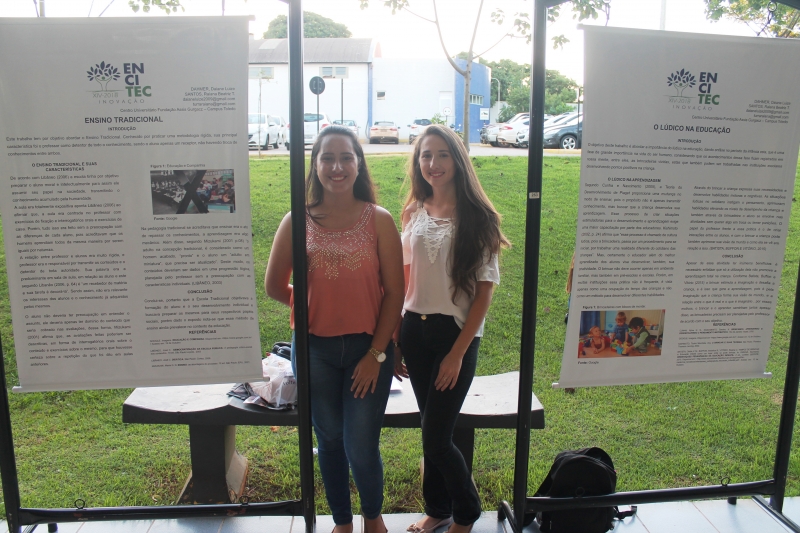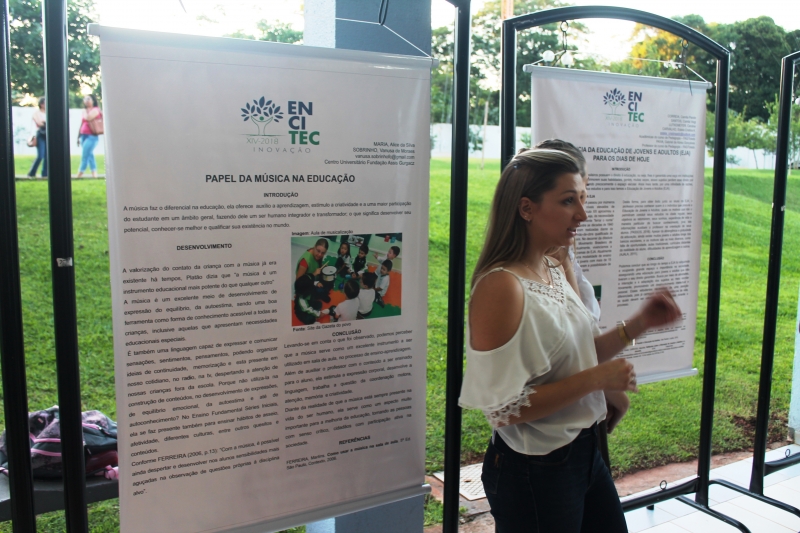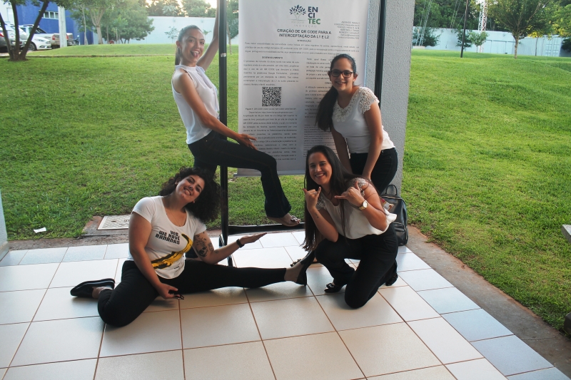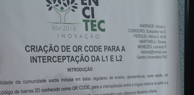 Um dos primeiros trabalhos avaliados estava na entrada do Bloco III. As acadêmicas de Pedagogia do 4º período criaram um QR Code que faz a interceptação de textos na língua materna dos surdos que é a Libras (L1) e na Língua Portuguesa escrita (L1). "Na sala de aula não tem tecnologia que ajuda os profissionais da educação que lidam com crianças surdas no ensino regular, por isto criamos a interligação através desse código que vai direcionar para plataforma com a tradução dos livros em Libras para Língua Portuguesa, através de vídeos. É uma forma de ajuda os alunos surdos e os não surdos na comunicação entre eles e suas línguas maternas", explica a acadêmica Tamara Martineli, uma das responsáveis pela ideia.