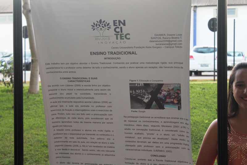 O Encontro Científico e Tecnológico (Encitec) da FAG Toledo realizou nesta quinta-feira (8) seu segundo dia de atividades com as apresentações dos primeiros banners, artigos e resumos expandidos. Do total de trabalhos inscritos para esta, que é a 14ª edição, 450 foram selecionados para as apresentações e avaliações das bancas, composta por docentes da instituição, que analisaram os argumentos, utilização de referenciais, inovação e criatividade. Os alunos apresentaram os trabalhos e responderam questões feitas na hora pelos professores e demais visitantes. "É um grande momento para a nossa instituição e para os acadêmicos, pois é o momento de mostrar tudo o que produziram de melhor ao longo do ano letivo, mostrar os conhecimentos adquiridos. Eles precisam vivencias várias estratégias de aprendizagem, são cobrados e orientados neste sentido e o resultado é a riqueza de ideias que apresentam aqui", comenta a coordenadora do Coopex da FAG Toledo e organizadora do Encitec, Cleonilda Tonin.
