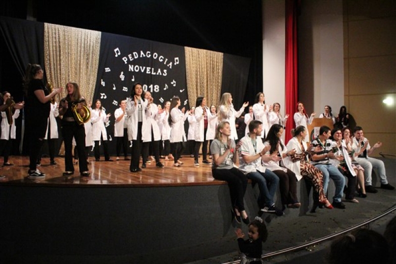 Acadêmicos do curso de Pedagogia do Centro FAG subiram ao palco do Anfiteatro da Reitoria e se apresentaram na 5ª edição da Mostra Cultural. Neste ano, o tema abordado foi "Novelas".