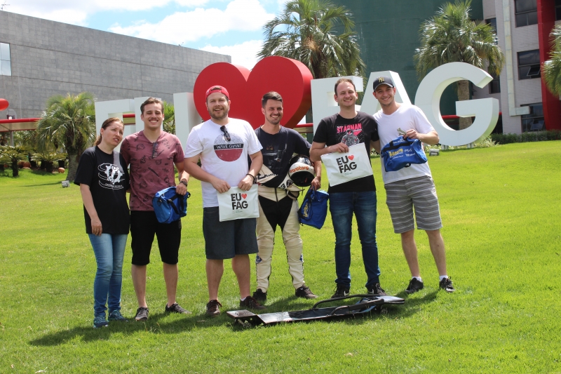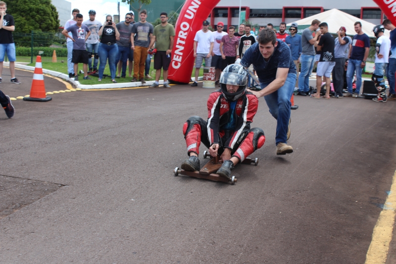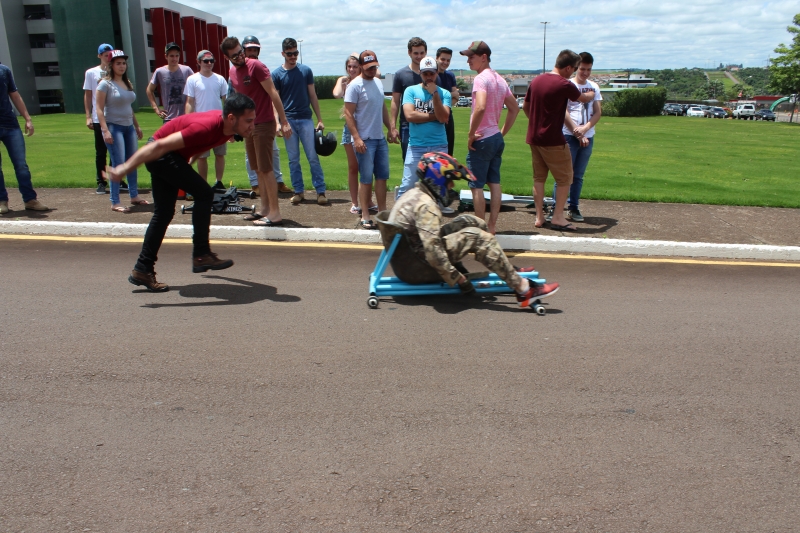 O piloto da equipe precisava estar bem protegido para a descida. Um colega o empurrava até o ponto delimitado pela organização. Aí, era só tentar passar primeiro pela linha de chegada. Quem conquistou o primeiro lugar foi o grupo do Micael Queiroz. "Ficamos vários dias praticando. Já tínhamos ganhado uma competição há alguns dias. Valeu a pena o esforço", conta. "Foi um momento interessante de integração do curso e também de mostrar o conhecimento adquirido pelos alunos. Vamos tornar o evento uma tradição", encerra o Coordenador do curso, Geovane Pinheiro.