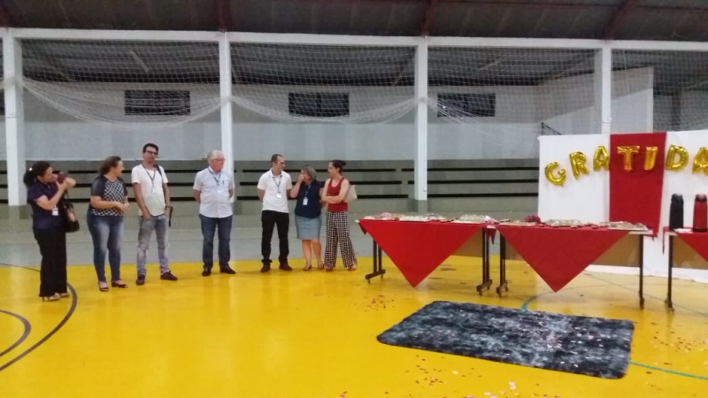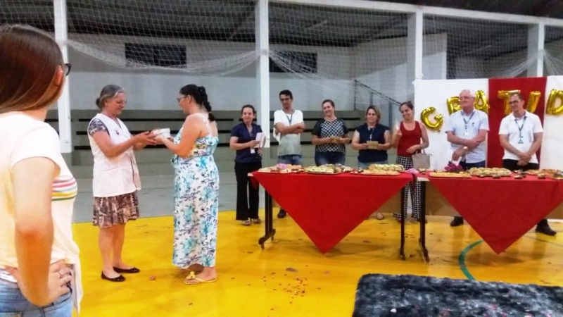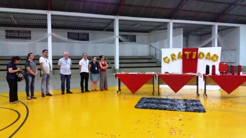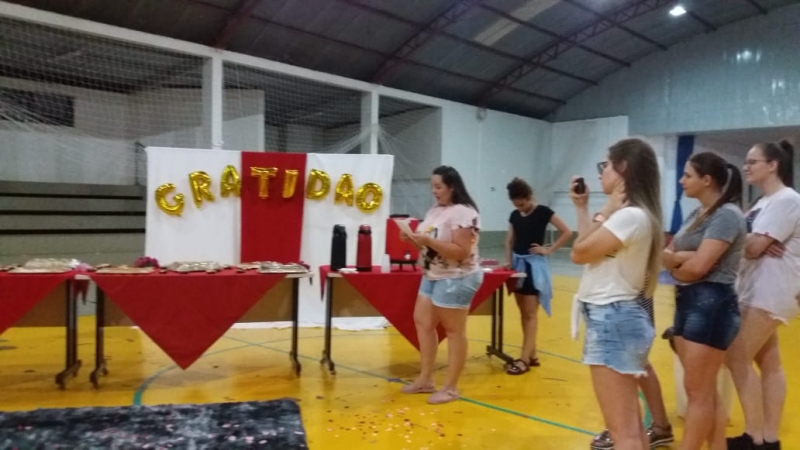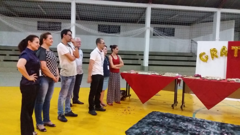 As acadêmicas do 8º período do curso de Pedagogia da FAG Toledo realizaram uma surpresa para os professores do curso no ginásio de esportes da instituição. As estudantes prepararam uma série de homenagens e entregaram presentes aos docentes. "Foi um momento especial de muito carinho por parte delas e nós ficamos muito contentes, pois é a primeira vez que uma homenagem assim acontece. É uma turma muito boa que começou bem grande e hoje deve formar 20 alunas que amadureceram muito durante estes quatro anos. Todas estão atuando de uma forma ou de outra na área, pois sempre foram empenhadas nos estágios e nas oportunidades que surgiram para elas na área da Educação. Vão deixar saudades", relata a coordenadora do curso de Pedagogia da FAG Toledo, Doralice Pizzo Diniz.