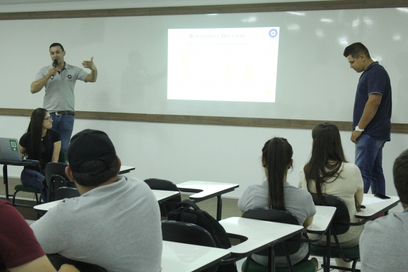 O trabalho da acadêmica, Isabella Inês Kisiel, foi um dos selecionados para ser apresentado. "Fizemos uma pesquisa sobre 'Avaliação do conhecimento sobre o uso de produtos fitossanitários em alimentos'. Essa pesquisa foi feita para saber se as pessoas têm algum tipo de conhecimento nessa área. Ficamos muito gratos em ser convocados para apresentar o nosso trabalho que foi feito com muita dedicação. É muito gratificante ir lá na frente e apresentar um trabalho, ficamos nervosos, mas é normal. É sempre um conhecimento a mais que adquirimos. E depois tivemos a oportunidade de ouvir o Manoel que é referência e exemplo de profissional, falando sobre ética, mais conhecimento ainda", declara.