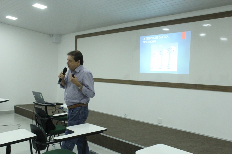 O evento contou com apresentações de trabalhos científicos, realizados na área de Ética , e com a participação do Engenheiro Agrônomo, Manoel Marcio Chaves que falou sobre "Engenheiro Agrônomo e a Ética Profissional". "Sempre recebo convite da professora Ana, e é sempre um prazer estar aqui na FAG. Vim falar dos três pilares da ética: Código, Saber e Sustentabilidade. Acabei fazendo uma interpretação minha do que é ética, e o foco que temos que trabalhar. Precisamos estar atentos e seguir os códigos de éticas profissionais", aponta o Engenheiro.