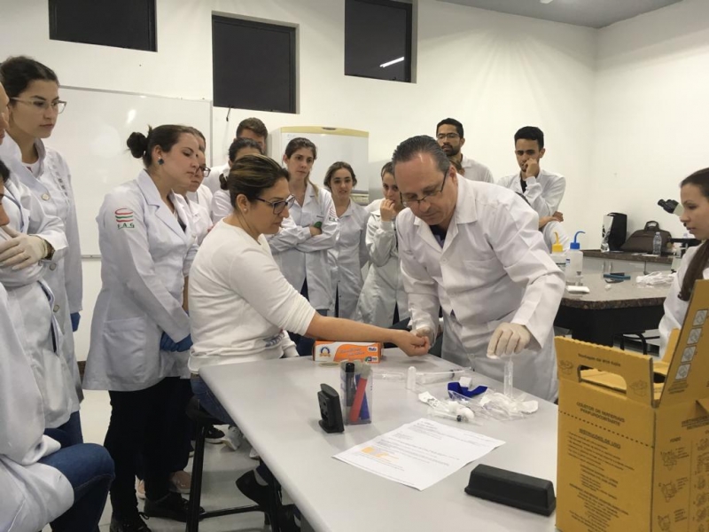 A Doutora, Leyde Peder, professora do curso de Farmácia do Centro Universitário FAG, organizou no último sábado (24) um curso sobre aplicação de injetáveis. O curso foi ministrado por Valquires Godoy e Márcio Antoniassi do CRF-PR (Conselho Regional de Farmácia) aos alunos do 6º, 8º e 10º períodos do curso.
