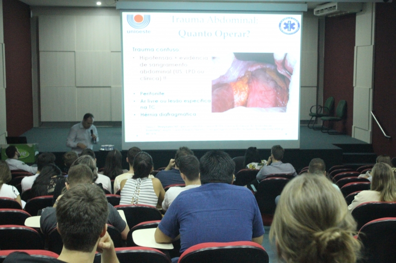 O palestrante, Dr. Peterson Bilhar, falou como o médico deve agir quando encontra um caso de Hérnias Encarceradas que causam dor, obstrução intestinal e diversas outras complicações no paciente. Ele também lembrou a importância de eventos voltados para a parte cirúrgica, mostrando um direcionamento para os que serão futuros profissionais da área. "O pessoal que organizou está de parabéns, Cascavel é uma cidade que vem crescendo cada vez mais. Nós temos duas faculdades de Medicina já bem fixadas, e um centro médico com crescimento grande e profissionais de muita qualidade", destaca.