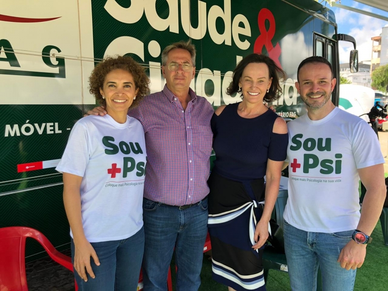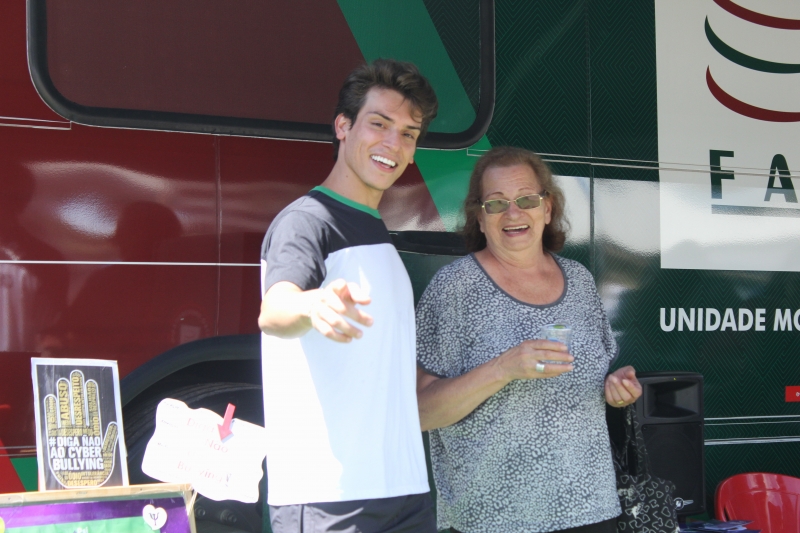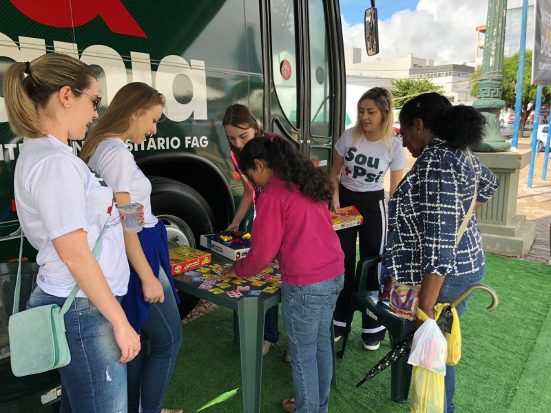 Acadêmicos do 6º, 8º e 10º períodos do curso de Psicologia e do 8º período de Educação Física do Centro Universitário FAG participaram de mais uma ação realizada com o Ônibus Saúde e Cidadania. A atividade foi realizada no Centro de Cascavel em frente à Catedral Nossa Senhora Aparecida e os atendimentos foram feitos no próprio Ônibus e em abordagens nas proximidades.