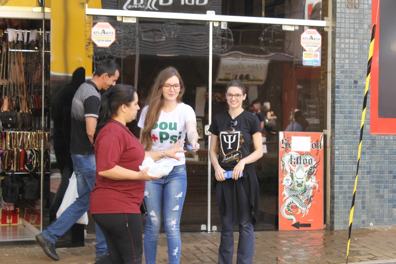 A acadêmica, Camila Vanzetto, fala sobre a experiência em abordar pessoas e falar sobre Psiciologia. "Nunca tivemos uma atividade parecida como essa e é muito gratificante ter a oportunidade de falar sobre Psicologia com as pessoas e desmitificando algumas coisas. Vou levar muito aprendizado de tudo isso, hoje me sinto mais segura em falar sobre os conceitos. Foi uma baita experiência", declara.