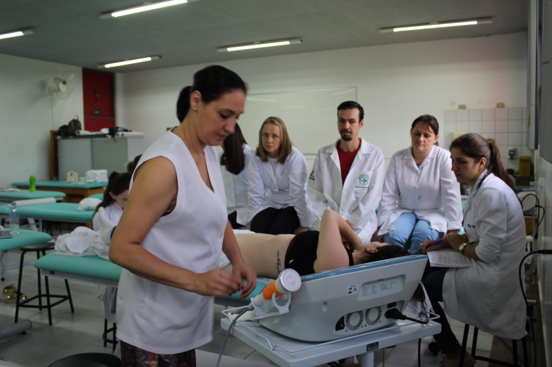 A professora, Glaciane Pozza Soares, foi quem ministrou a aula. Ela ressaltou a importância dos alunos terem essas práticas durante o curso, pois, os alunos veem como funciona o aparelho e tiram dúvidas com quem entende de técnica. "Com essas aulas eles conseguem entender a importância dos resultados e ver a qualidade dos equipamentos utilizados, já tendo um direcionamento de como trabalhar na Estética e se compensa adquirir tais produtos nas clínicas", comenta.