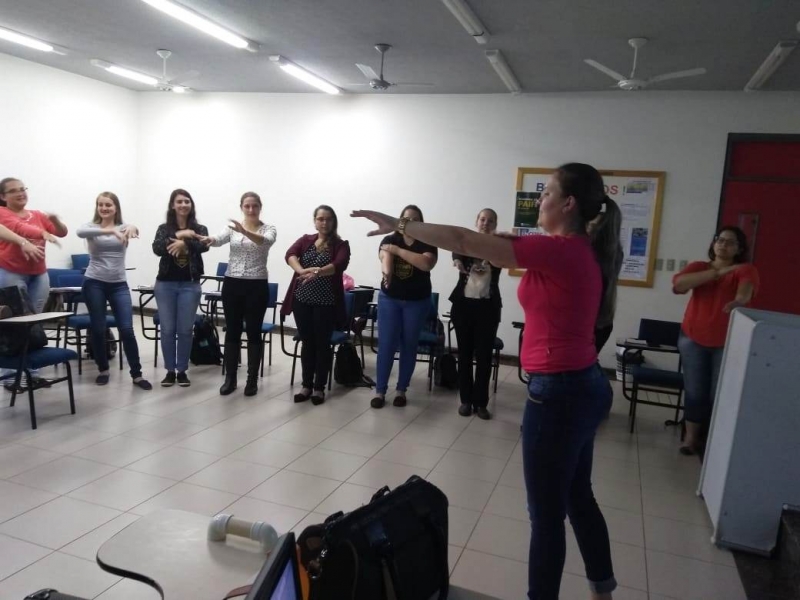 Em um novo encontro, Solange Brunetto, da fábrica de brinquedos e jogos pedagógicos Carlu palestrou sobre o trabalho do pedagogo nos espaços de criação e desenvolvimento de jogos e brinquedos pedagógicos. O projeto contou ainda com a participação da pedagoga Tereza Maria Miranda de Carvalho que atuou na Vara da Infância e Juventude, da Comarca de Toledo. A profissional aposentada tratou dos aspectos da atuação do pedagogo em ações de atendimento de crianças e adolescentes em conflito com a lei, crianças e adolescentes em regime de acolhimento institucional, processos de adoção, entre outros atendimentos que realizou nos últimos 30 anos de trabalho na área. A egressa do curso de Pedagogia da FAG Toledo, Jessica Aline Pavan Krebs relatou sobre seu trabalho de pesquisa em busca de soluções para os problemas de alfabetização e adoção da técnica do sussurrofone.