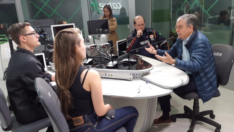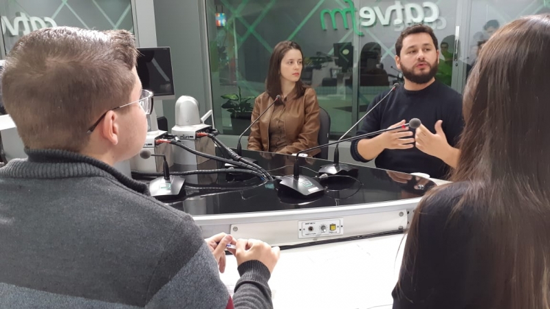 Acadêmicos do 4º período do curso de Jornalismo do Centro FAG foram protagonistas no programa Nova Pauta transmitido pela Catve FM. O programa, ancorado pelo jornalista, Deivid Souza, foi ao ar pela primeira vez em julho deste ano (2018).