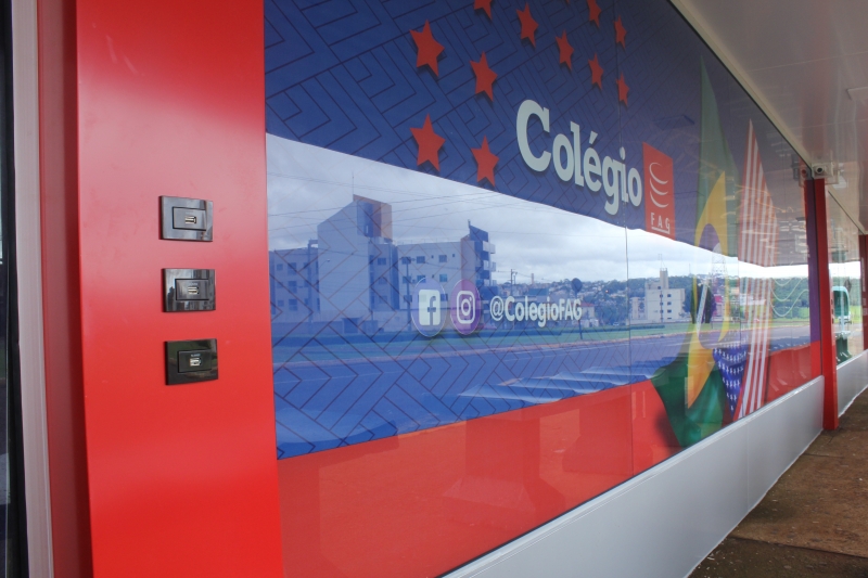 O novo ponto de transporte coletivo possui equipamentos de alta tecnologia: revestimento térmico; saídas de carregamento direto de USB; acesso ao wi-fi aberto com conexão forte (mediante a cadastramento); iluminação backligth - divulga os principais produtos da FAG - e, áudio exclusivo que faz parte de uma extensão de alta definição do campus.
