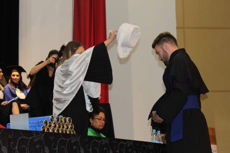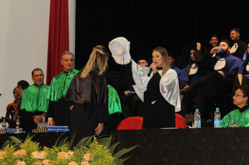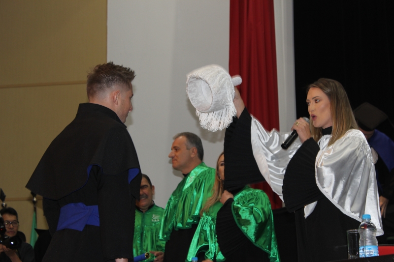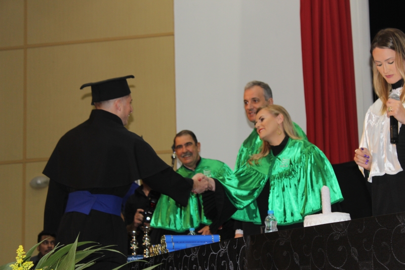 No final da cerimônia a presidente da sessão, Aline Gurgacz Ferreira Meneguel, entregou a láurea acadêmica aos formados, Bruno Scherer e João Eduardo Frey Dalberto Lemos. Os pais dos novos administradores também subiram ao palco para a homenagem.