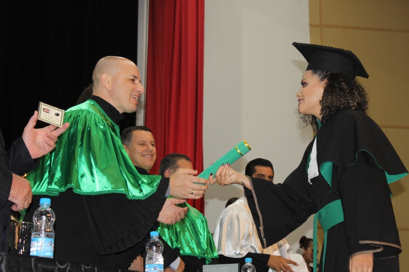 Três turmas do curso de Educação Física Bacharel, do Centro Universitário FAG, receberam, em três cerimônias diferentes, a outorga de grau. Os agora profissionais receberam também o Registro do CREF, entregue pelos representantes do CREF 9/PR (Conselho Regional de Educação Física da 9ª Região do Estado do Paraná), Sr. Idalino Pietch e pelo Sr. Gustavo Chaves Brandão.