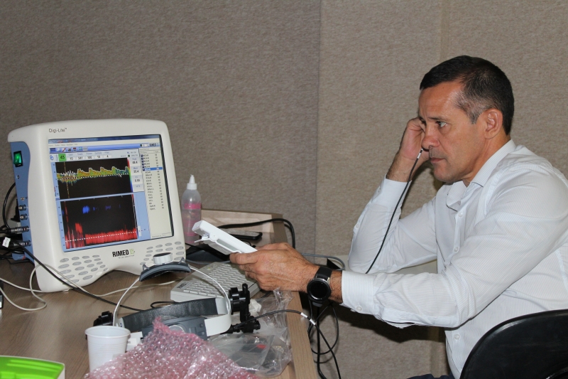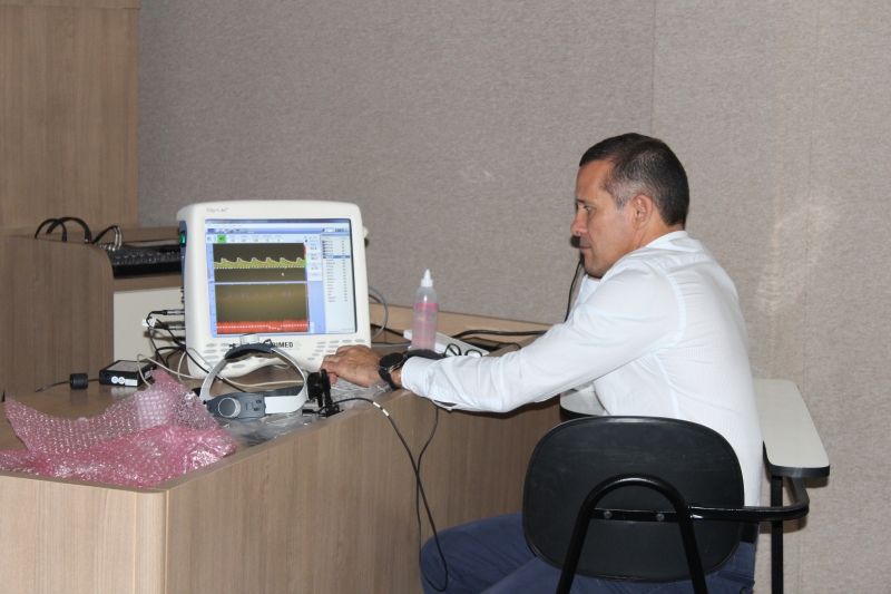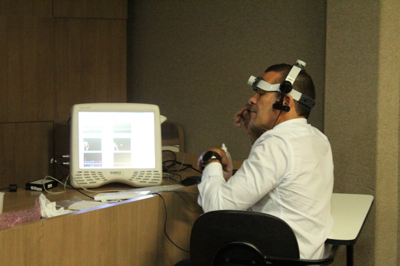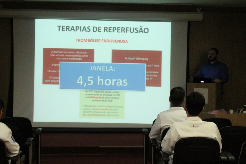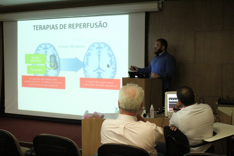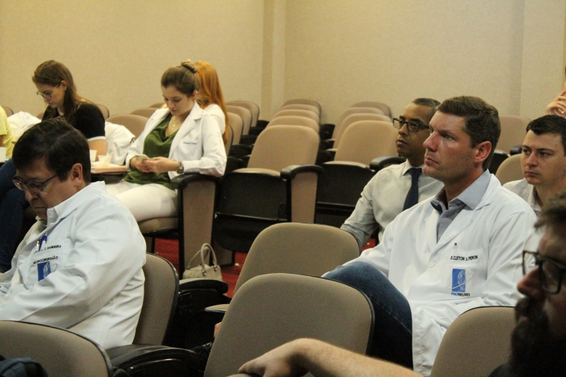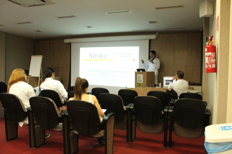 A atividade foi realizada no Auditório do hospital e contou com a demonstração, ao vivo, de um exame de DTC e monitorização com capacete