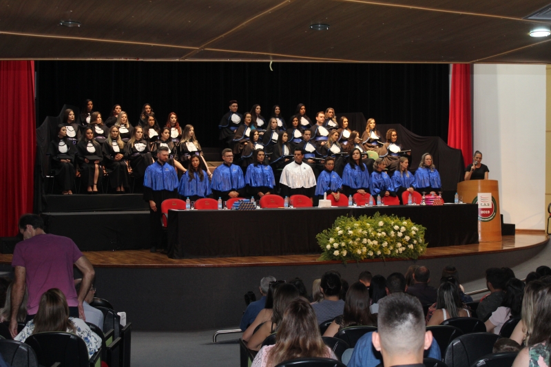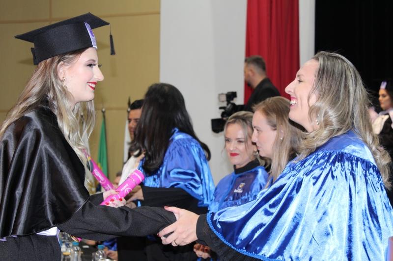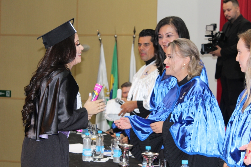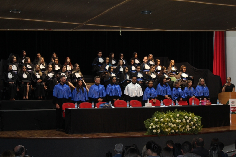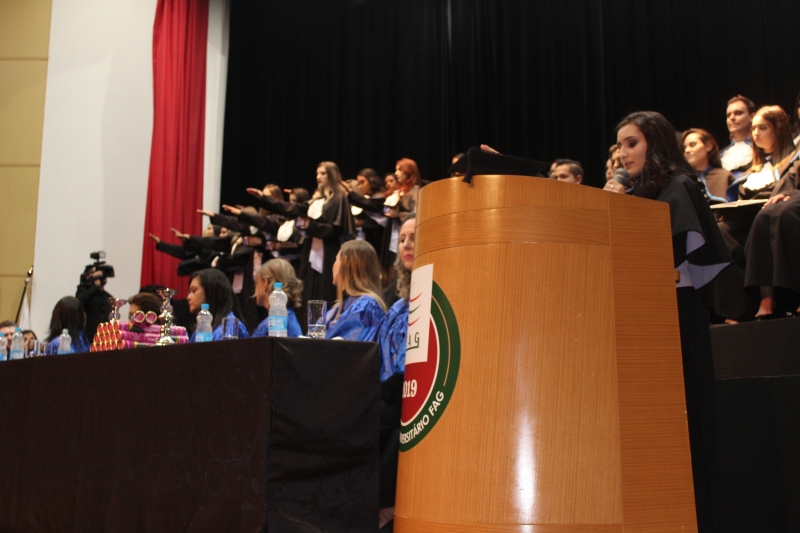 "Nesses três anos passamos por vários perrengues, as provas de anatomia, os relatórios das aulas de cosmética, mas nada se compara com as calorosas aulas de estágio que tivemos nas clínicas. Tudo isso contribui significativamente para o nosso desenvolvimento pessoal e profissional. Foi notório nosso crescimento durante esse tempo", apontou, em seu discurso, a oradora da turma de Estética e Cosmética, Daniela Pimenta dos Santos.