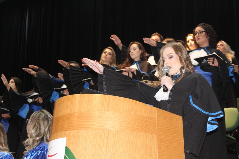 A formanda, Fernanda Cartieri Dalsasso, do curso de Design de Interiores, procedeu ao juramento. Já no curso de Estética e Cosmética, a formanda, Silvia Souza Rocha, confirmou o juramento com os colegas.