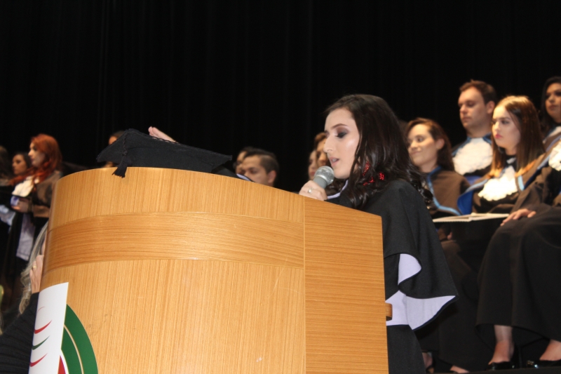 Michelly ribeiro Cecchele foi a oradora da turma do curso de Design de Interiores. "A Faculdade foi um aprendizado. Fomos desafiados, instigados e cobrados. Achamos que não iria dar tempo, que o computador iria explodir fazendo aquele render às 2h da manhã., e que nada, absolutamente nada daria certo e que no fim do curso estava mais longe do que imáginavámos. Ansiávamos as férias, temíamos o ENADE, nos torturávamos com as provas Multi, mas sempre tivemos o apoio necessário para seguir", declarou.