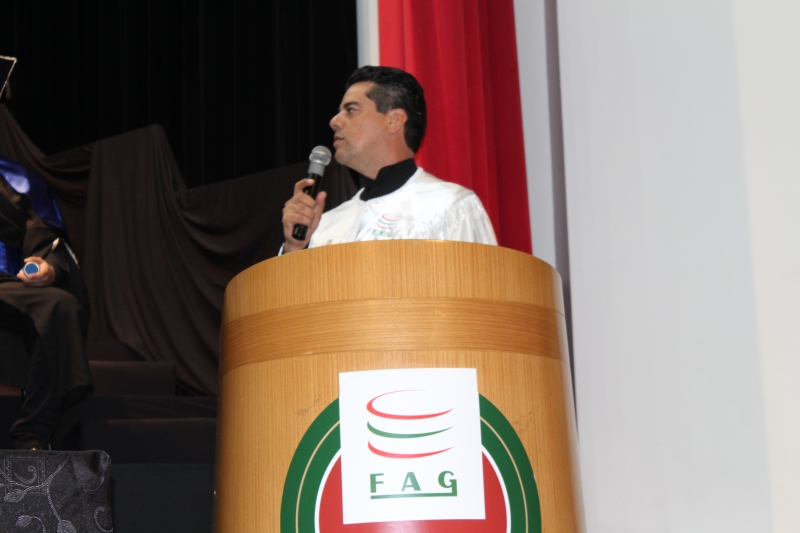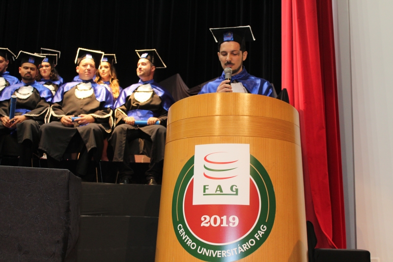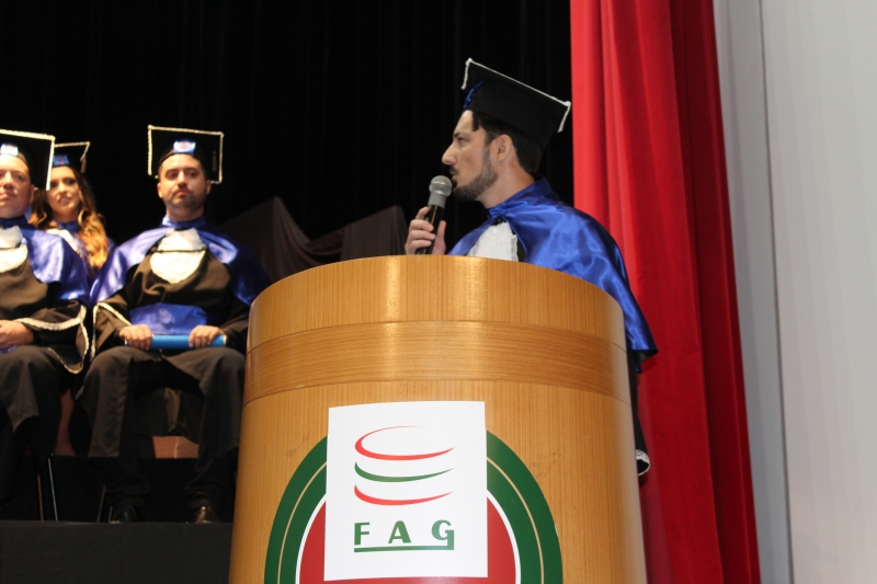 Ao usar a palavra, o paraninfo lembrou os formados sobre a responsabilidade deles enquanto profissionais. "Ao conceder a cada um de vocês o grau de engenheiro eletricista o Centro FAG manifesta a convicção de que vocês estão prontos para o exercício da profissão, portanto, sabem o suficiente para iniciar com competência e segurança a carreira em uma das áreas mais significativas para o desenvolvimento do país", enfatiza.