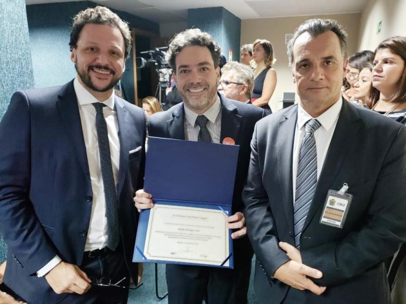 O professor Rodrigo Rodrigues Dias do curso de Direito da FAG Toledo recebeu uma menção honrosa no IX Prêmio Conciliar é Legal, na categoria "Instrutores de Mediação e Conciliação". O docente é juiz do Tribunal de Justiça do Paraná na Comarca de Toledo e participou da solenidade de premiação na última semana na sede do Conselho Nacional de Justiça (CNJ).