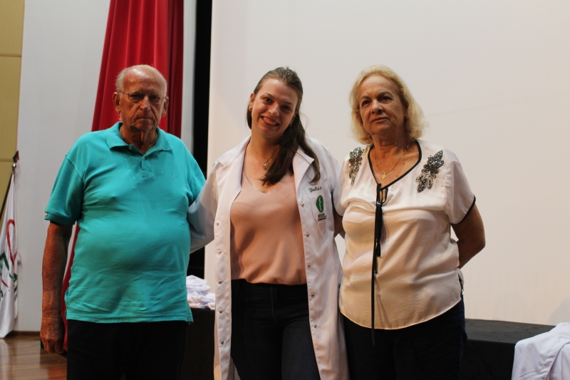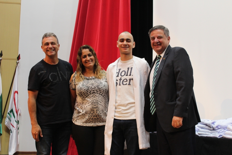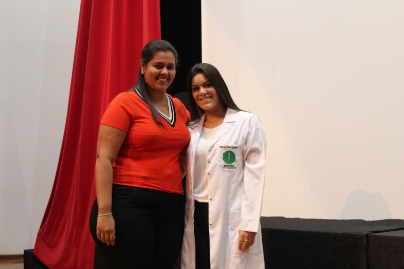 O curso de Medicina realizou a cerimônia de entrega do jaleco, simbolizando para os calouros o início da caminhada de 6 anos no curso. Familiares e amigos participaram do evento, realizado no Anfiteatro da Reitoria. O Prefeito Leonaldo Paranhos também marcou presença, destacando a importância do profissional médico na sociedade.