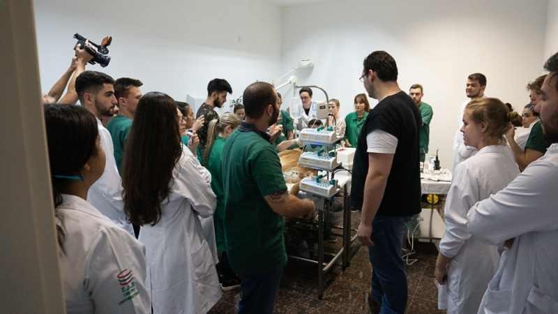 A atividade foi acompanhada por acadêmicos do curso de Medicina Veterinária. Foi uma oportunidade para aprender mais sobre animais selvagens e também sobre sedação. O professor da disciplina de Anestesiologia, Rodrigo Neca Ribeiro, foi quem acompanhou todo o processo, desde a captura do animal até a devolução dele ao recinto. "É algo importante para os alunos. Desperta neles o interesse em selvagens, além de ser relevante para aprender mais sobre sedação, sobre como funciona em animais dessa espécie", detalha Rodrigo. "É algo que foge da rotina. Foi bem interessante aprender sobre os fármacos e como é o tratamento com esse tipo de animal", complementa a acadêmica, Débora Boamorte.