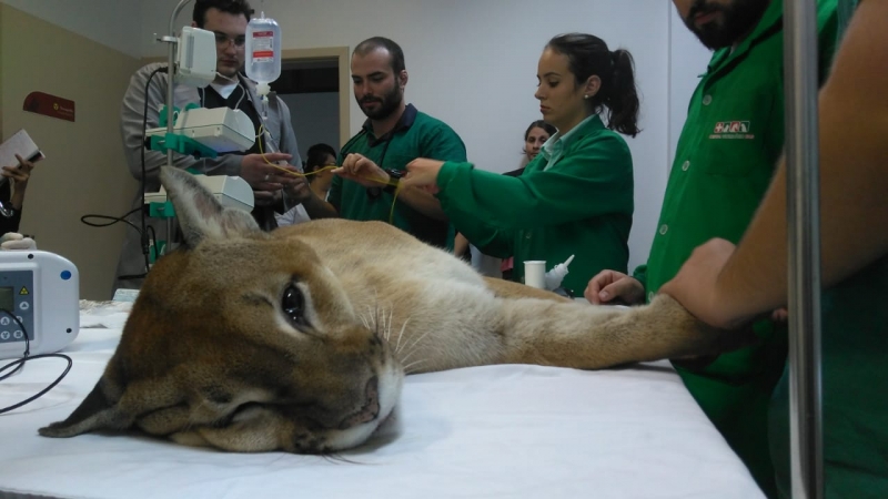 Puma passa por procedimento odontológico no Hospital Veterinário da FAG