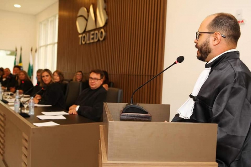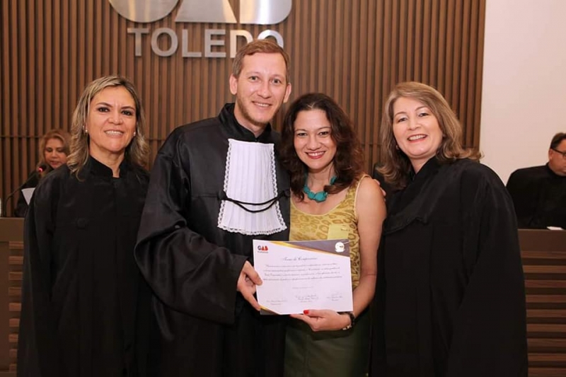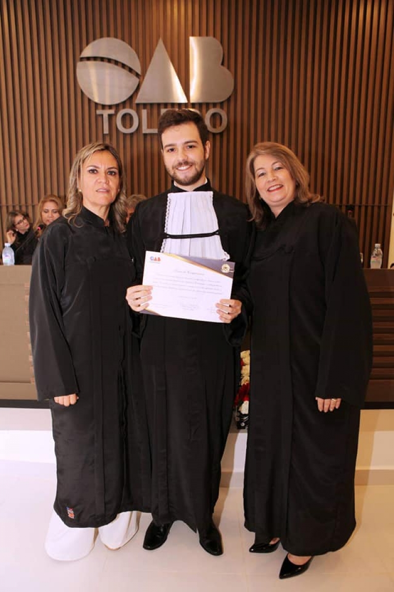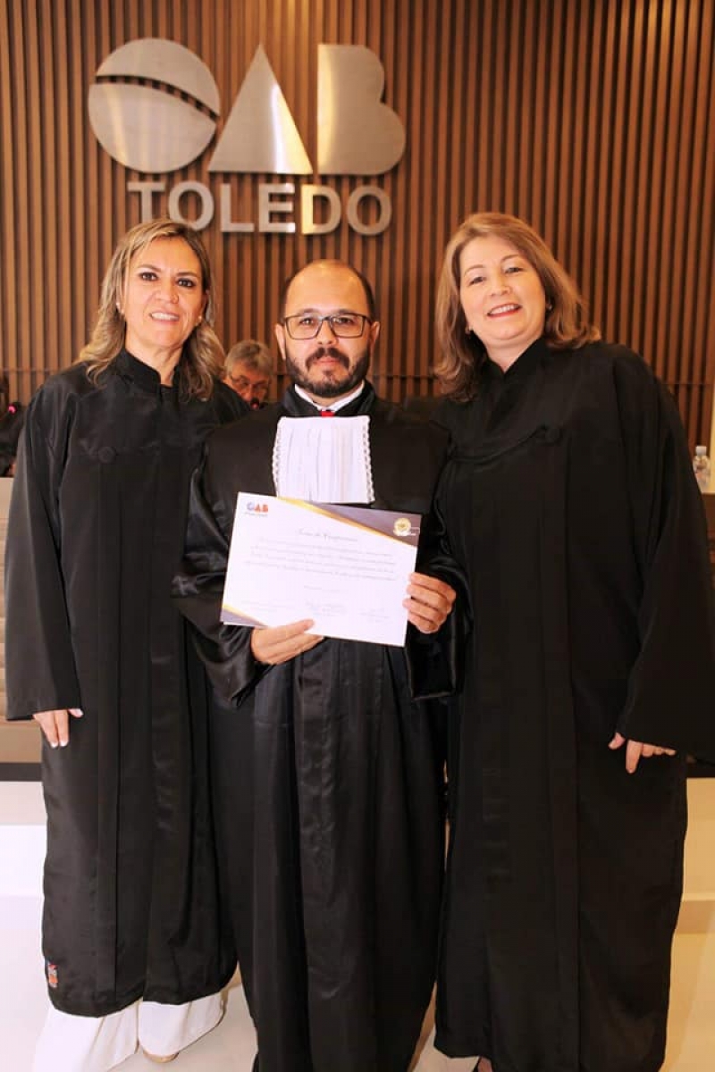 Os mais novos aprovados no exame da Ordem dos Advogados do Brasil (OAB) de Toledo acabaram de assinar o termo de compromisso, que habilita o bacharel para o exercício da advocacia. Doze egressos da FAG do curso de Direito da FAG Toledo e do Centro FAG participaram da cerimônia. Um dos oradores foi o advogado Alexandre de Oliveira, que passou no exame da Ordem no ano passado, quando ainda cursava a graduação. O profissional colou grau em janeiro deste ano. Na sua fala ele ressaltou sobre a importância do trabalho da FAG, na dedicação do corpo docente e na estrutura e incentivo que culminaram na aprovação no temido exame, antes mesmo de sair da faculdade.