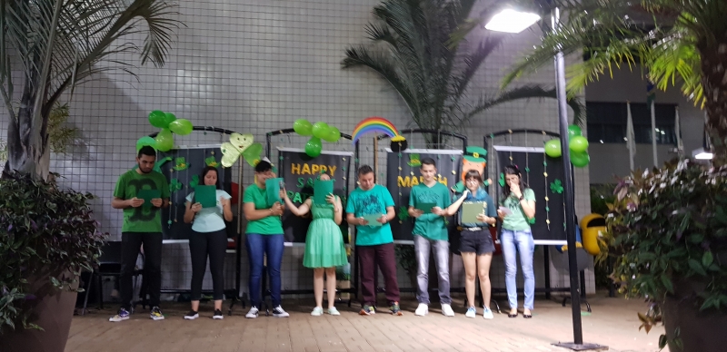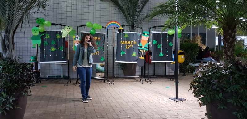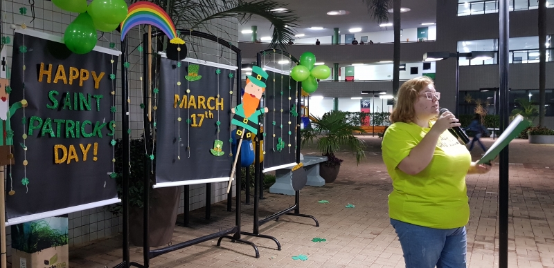 Acadêmicos dos cursos de Letras, em comemoração ao "Saint Patricks Day", ou Dia de São Patrício, se reuniram no espaço de convivência do Bloco 02 e contaram a história do padroeiro da Irlanda através da dança, música e declamação de poesias. A Irlanda comemora no dia 17 de março e a data é lembrada também em países de língua inglesa e em outros países que receberam imigrantes irlandeses.