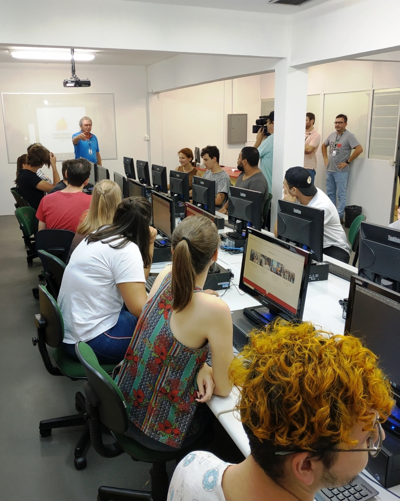 O curso de Publicidade e Propaganda da FAG Toledo inaugurou na noite desta segunda-feira (25) a nova Agência Experimental de Comunicação Integrada (Agecin). O laboratório que fica no bloco de comunicação, anexo ao laboratório de rádio e da FAG FM, foi equipado com 20 computadores com processadores Intel I5 e pacotes com os principais programas utilizados para a produção publicitária. A sala também foi equipada com projetor multimídia para a realização de aulas e outras atividades inerentes ao curso. "Olhando os equipamentos dá para perceber que são de qualidade e esta é uma preocupação porque o computador é a peça chave do nosso trabalho", comenta o acadêmico Wilson Nunes, do 3º período do curso.