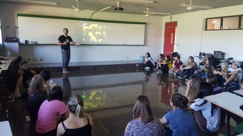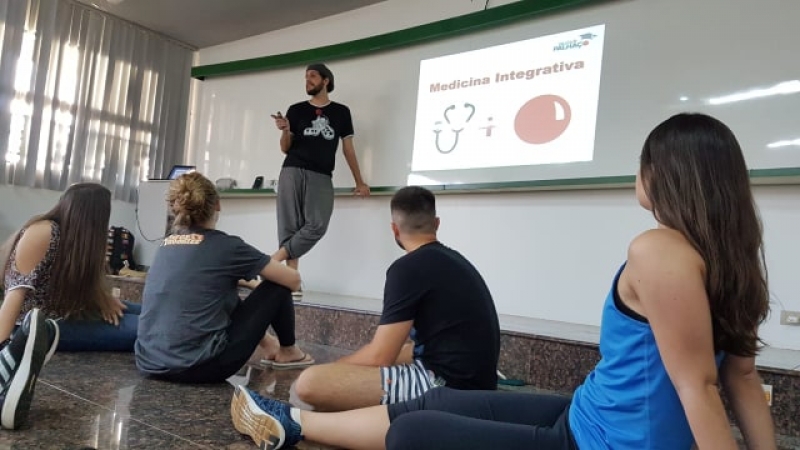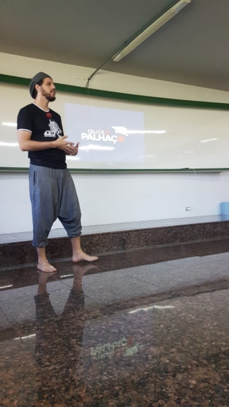 O professor, Alexandre Vinícius Penha, da Escola de Palhaço, trouxe aos acadêmicos a arte de se aproximar dos pacientes de forma descontraída, amenizando o momento de dor