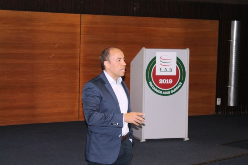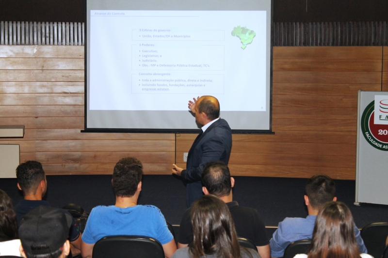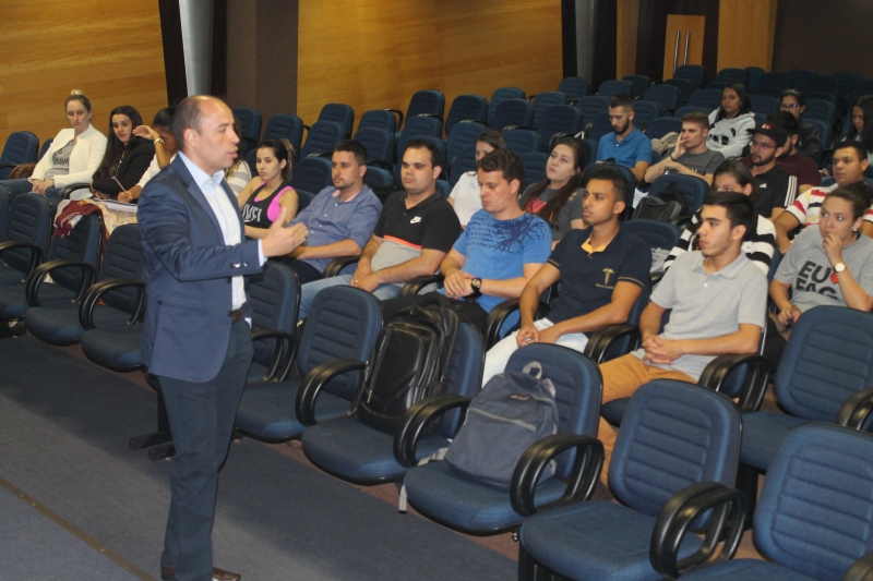 O controlador interno da Câmara Municipal de Toledo, David Calça palestrou esta semana aos acadêmicos dos cursos de Administração e Ciências Contábeis da FAG Toledo. O profissional é servidor de carreira no Legislativo e apresentou o tema: Diretrizes do Controle Interno e aspectos da Lei de Responsabilidade Fiscal. O objetivo do evento, de acordo com a professora Edina Kinzler foi debater e estudar sobre o controle interno na administração pública municipal observando sobre como controle é útil dentro do princípio da eficiência. "As áreas de Ciências Contábeis e de Administração atuam fortemente no setor público, por isto é importante colocarmos nossos acadêmicos em contato com estes profissionais, que conhecem toda a sistemática e podem contribuir muito na expansão do conhecimento deles", afirma.