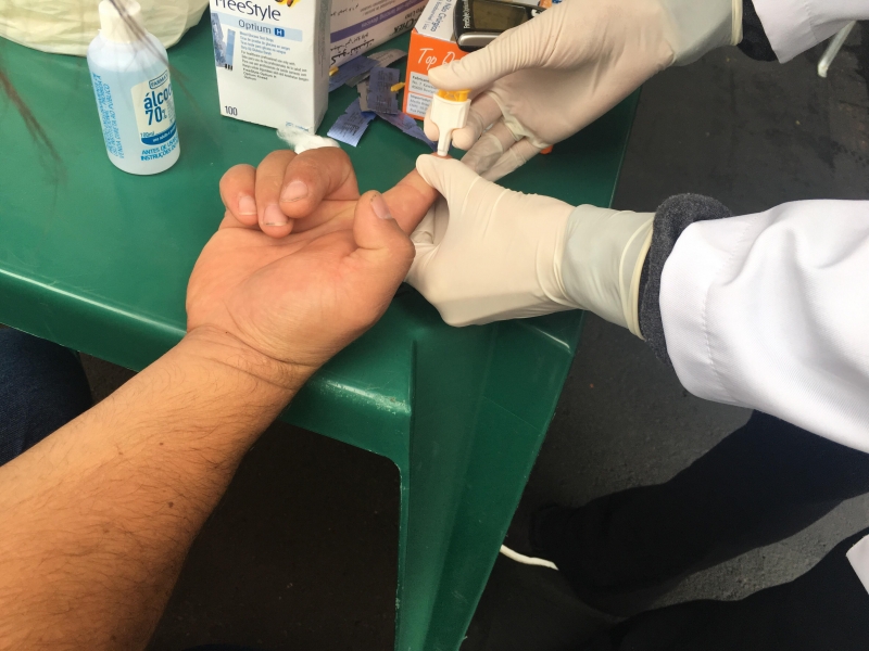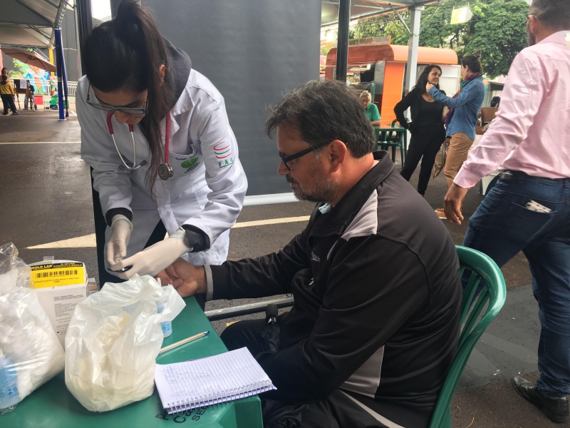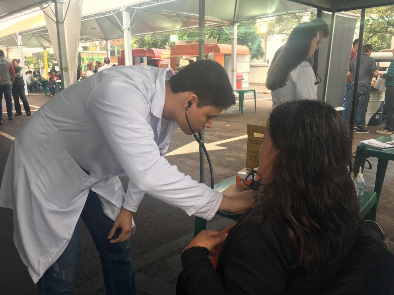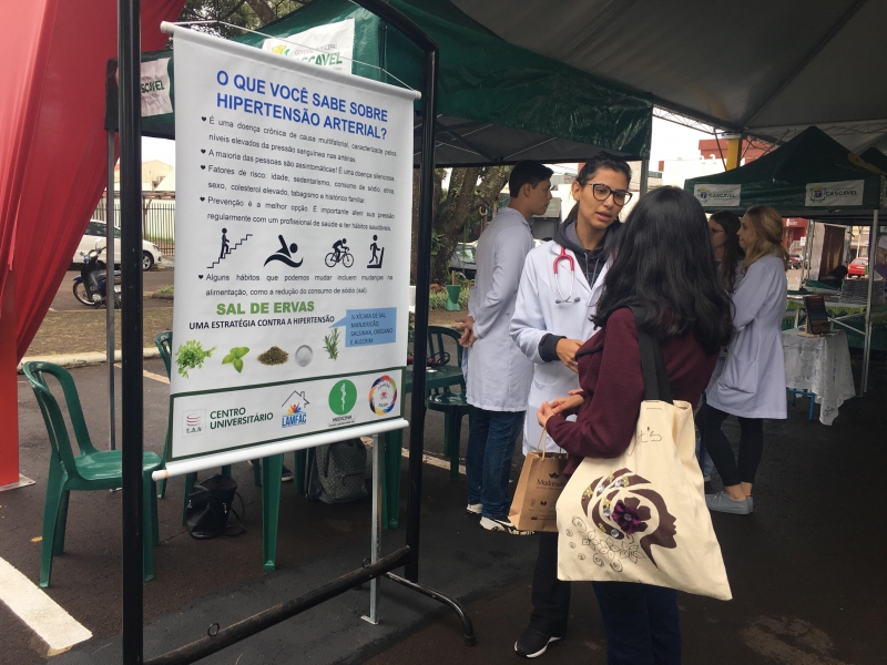 Projeto de orientação à população do curso de Medicina do Centro Universitário FAG teve início no último domingo (07). Na ação realizada na Feira do Teatro, localizada no estacionamento do Centro Cultural Gilberto Mayer, as Ligas Acadêmicas da graduação fornecem informações sobre saúde para a população, com o apoio do Centro Acadêmico Rui Almeida (CAMERA).